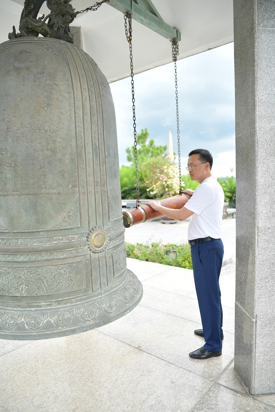 Đ/c Phạm Quang Dũng - Ủy viên BTV Đảng ủy Khối DNTW, Bí thư Đảng ủy, Chủ tịch HĐQT thỉnh chuông tại Nghĩa trang liệt sỹ Quốc gia Đường 9