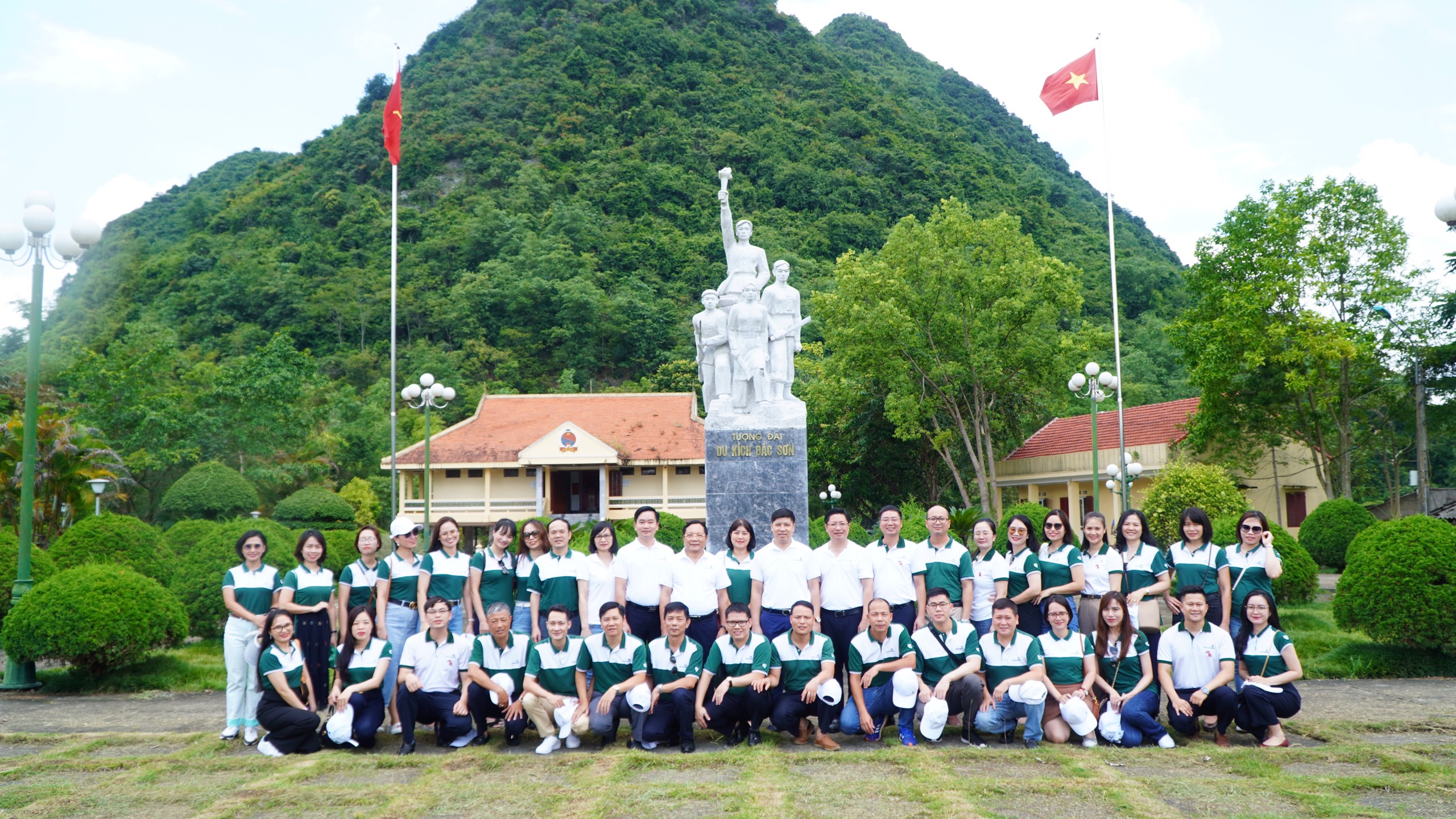 Đoàn đại biểu khối Nhân sự Vietcombank chụp ảnh lưu niệm tại Bảo tàng Khởi nghĩa Bắc Sơn