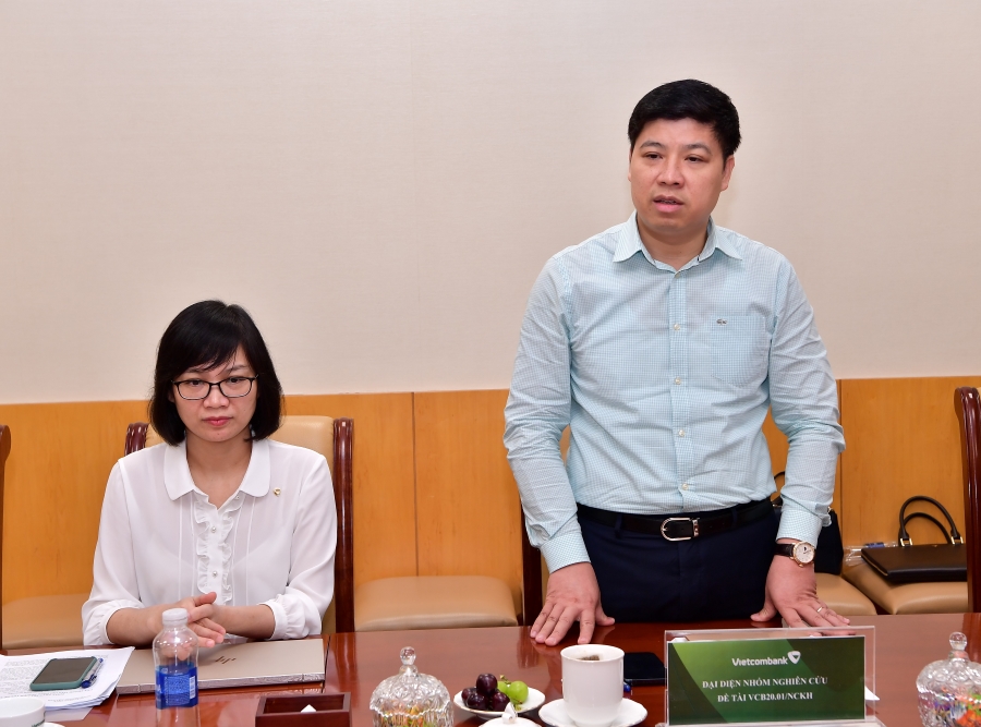 Tham dự buổi nghiệm thu, về phía Hội đồng nghiệm thu, có Tiến sỹ Phạm Mạnh Thắng - Phó Tổng Giám đốc, Phó Chủ tịch Hội đồng Khoa học và Công nghệ Vietcombank - Chủ tịch Hội đồng nghiệm thu; ông Đặng Bình Nguyên - Trưởng ban Tổ chức và Nhân sự, thành viên phản biện 1; bà Lê Thị Huyền Diệu - Trưởng phòng Chính sách Tài chính Kế toán, thành viên phản biện 2, cùng các thành viên khác của Hội đồng và các thành viên của Nhóm nghiên cứu đề tài.