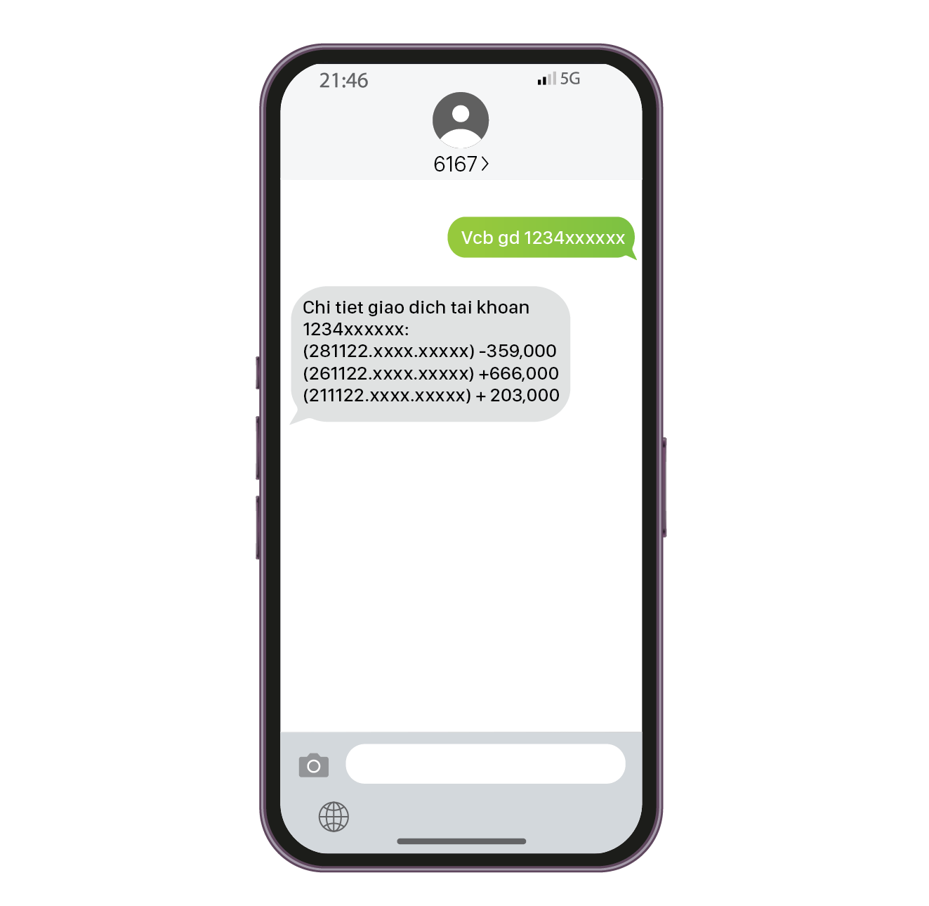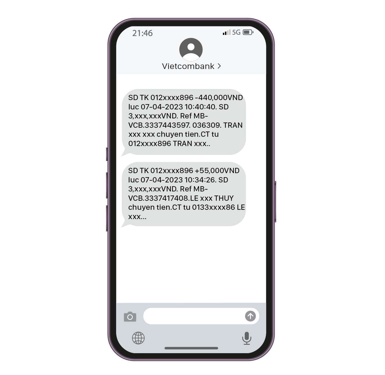 Receive notifications of account balance changes, international card spending transactions, loan principal repayment schedule, loan interest,... via SMS