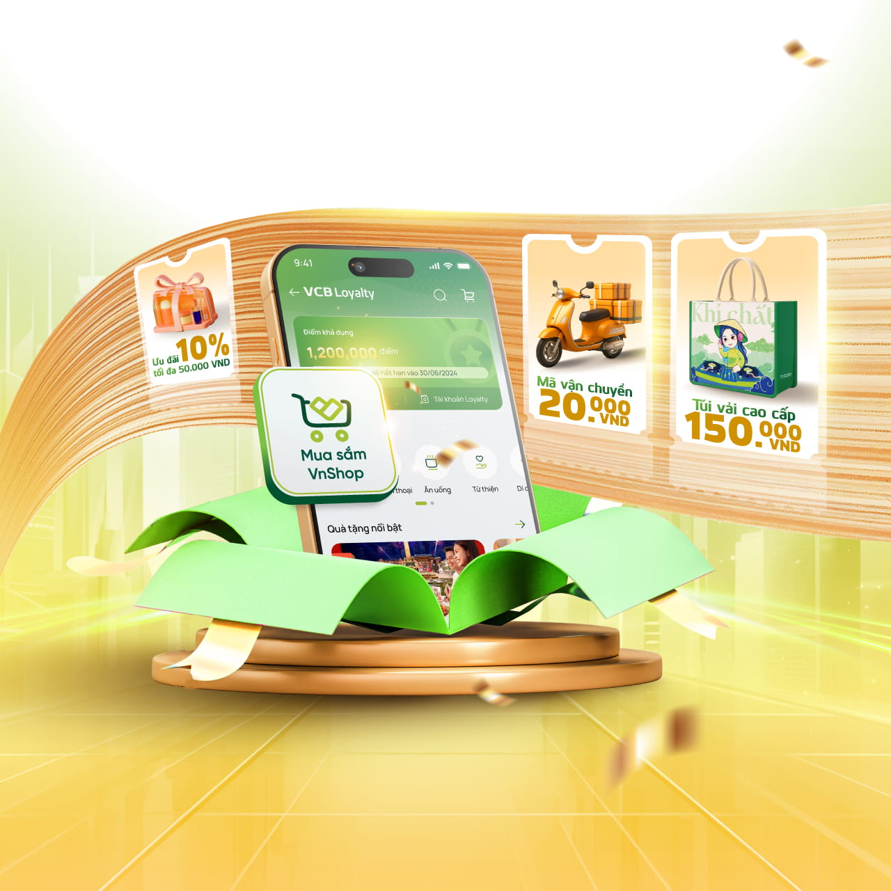 VCB customers, who are also VCB Rewards members can have opportunity to receive a lot of appealing offers in one order when shopping on VnShop through VCB Digibank.