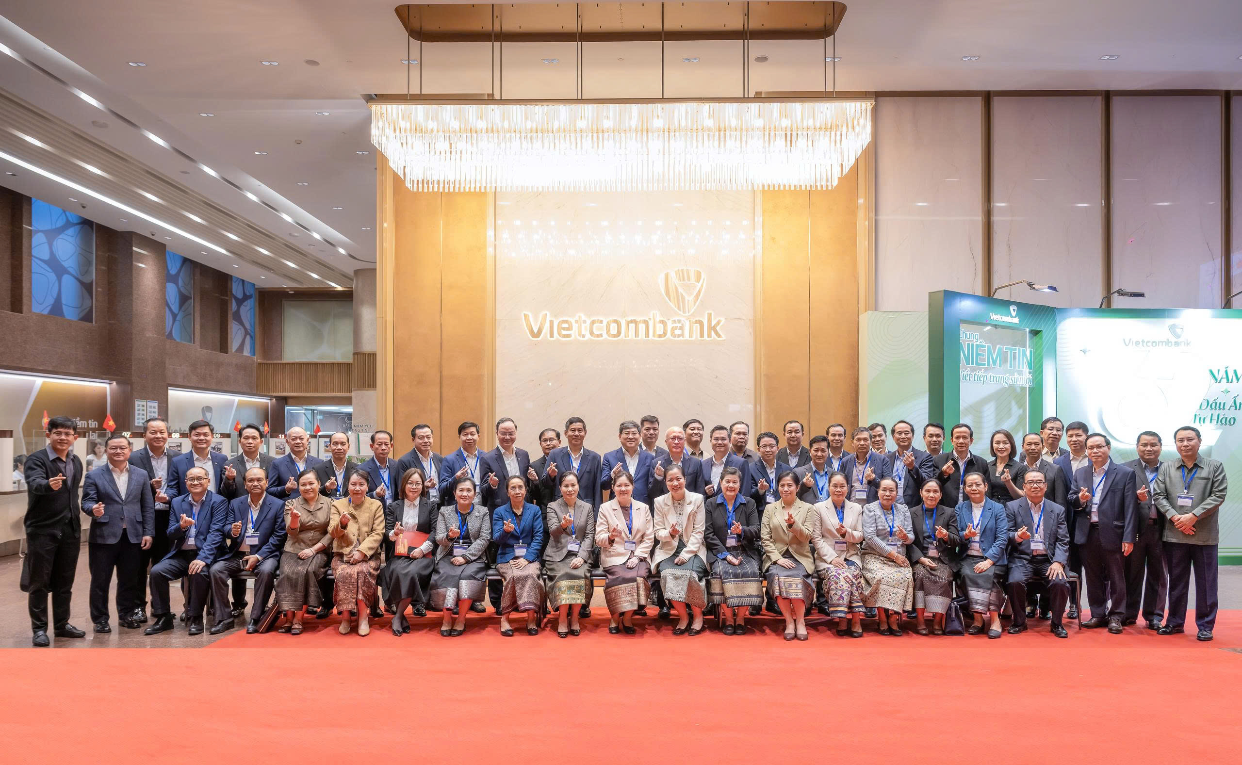 The Lao delegation, joined by accompanying Vietnamese representatives, was received by Vietcombank’s Board of Directors at the bank’s headquarters in Hà Nội, where both sides took commemorative photos marking the occasion