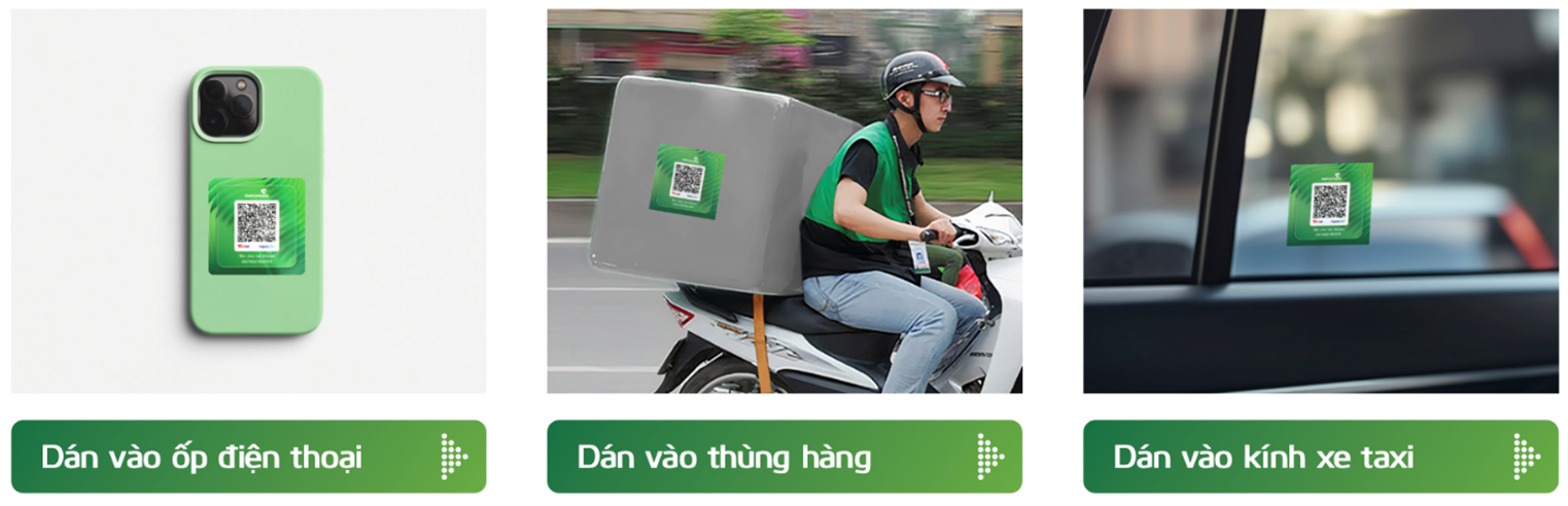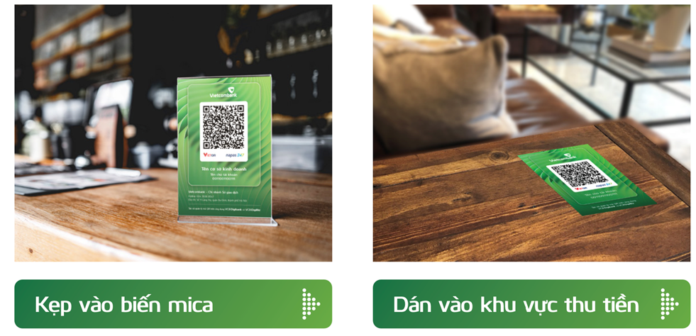 Thông qua nghiên cứu kỹ lưỡng nhu cầu sử dụng mã QR của người bán hàng, Vietcombank đã thiết kế mã QR với nhiều kích thước và mục đích sử dụng khác nhau để phù hợp với các tình huống trong thực tế như: Đặt tại quầy thu ngân, dán trên mặt phẳng, dán trong xe taxi, dán trên thùng hàng, dán trên điện thoại… Khách hàng có thể liên hệ các điểm giao dịch của Vietcombank để được tư vấn và hỗ trợ in ấn/sản xuất mã QR phù hợp theo nhu cầu.