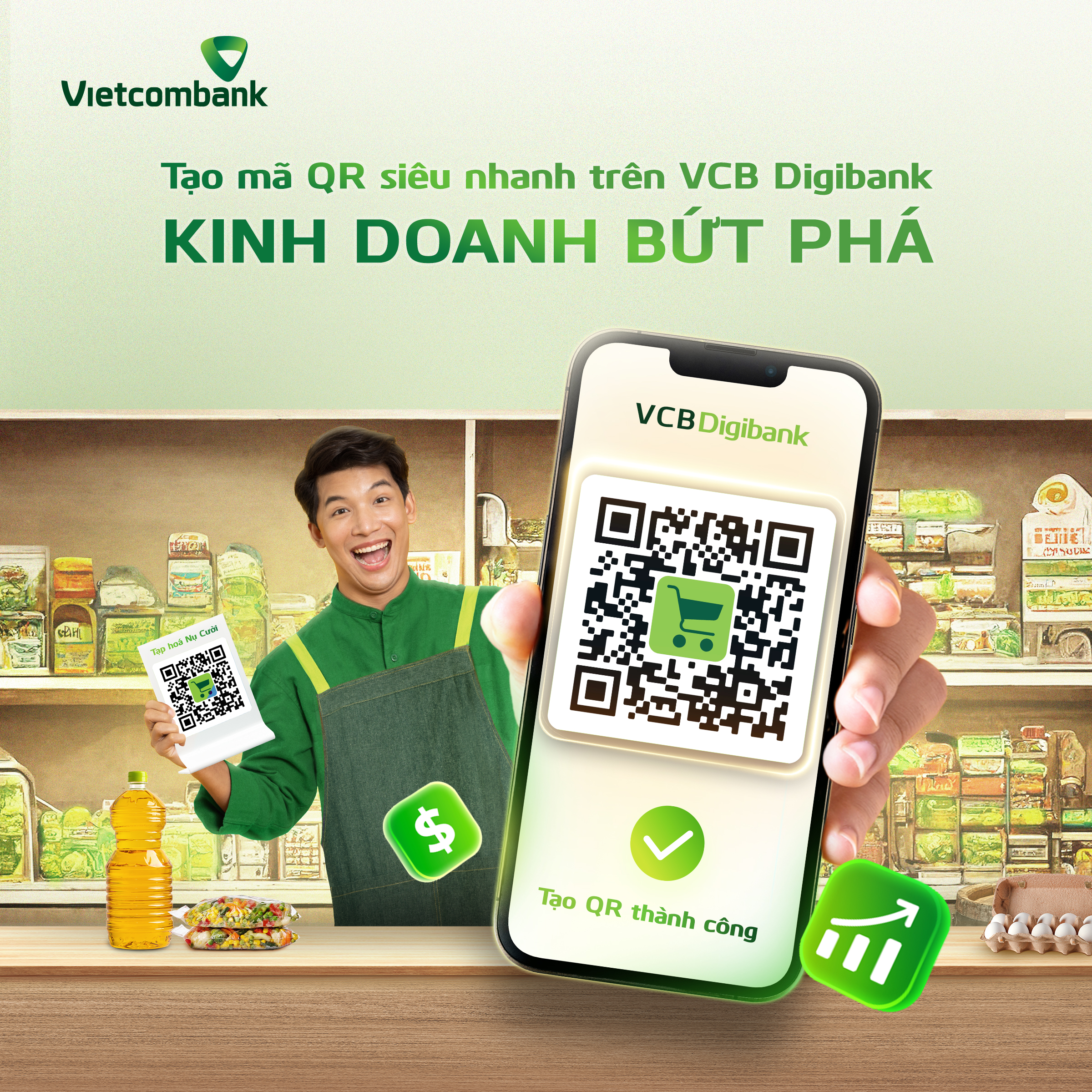 Thanh toán bằng mã QR đã đổ bộ vào từng khu phố, từng cửa hàng, từng tiệm tạp hóa lớn nhỏ và trở nên quen thuộc với đông đảo người dân. Từ lâu, khách hàng kinh doanh của Vietcombank đã có thể tạo mã QR của riêng mình trên ứng dụng VCB Digibank hoặc VCB DigiBiz một cách nhanh chóng và sử dụng mã QR đó để người mua hàng thanh toán chuyển khoản bằng cách “quét” mã.