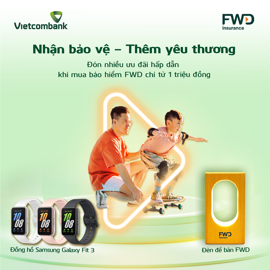 Vietcombank cùng FWD Việt Nam trân trọng giới thiệu tới quý khách chương trình ưu đãi đặc biệt hấp dẫn “Nhận bảo vệ - Thêm yêu thương”.