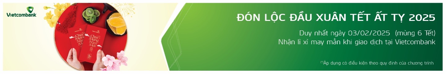 Chào năm mới Ất Tỵ 2025, Vietcombank triển khai chương trình “Đón lộc đầu xuân Tết Ất Tỵ 2025” với 20.000 lì xì may mắn dành tặng Quý khách hàng.
