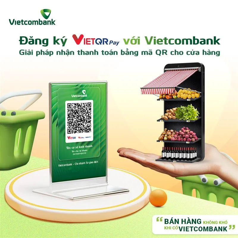 Ngân hàng TMCP Ngoại thương Việt Nam (Vietcombank) phối hợp với Công ty cổ phần thanh toán Quốc gia Việt Nam (Napas) chính thức là ngân hàng tiên phong trong hợp tác triển khai dịch vụ VietQRPay - giải pháp nhận thanh toán bằng mã QR dành cho các cửa hàng, cơ sở kinh doanh và doanh nghiệp trên toàn quốc. Đây là bước tiến quan trọng trong lộ trình thúc đẩy thanh toán không tiền mặt, hỗ trợ người bán tối ưu hóa vận hành và người mua trải nghiệm giao dịch thuận tiện, an toàn.