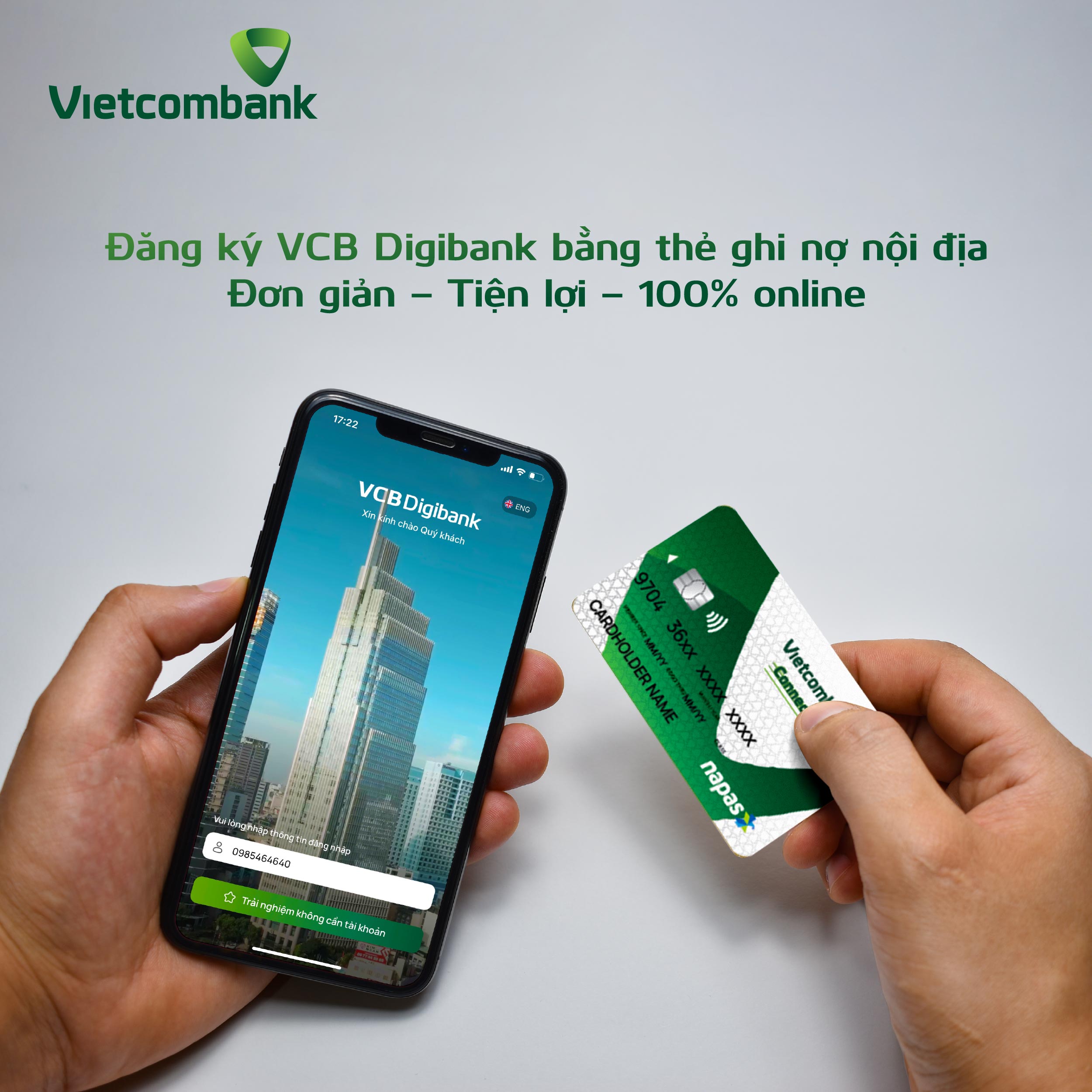 Để tối ưu trải nghiệm và đáp ứng nhu cầu của khách hàng, Vietcombank mở rộng phương thức đăng ký VCB Digibank trực tuyến bằng thẻ ATM hoặc thẻ ghi nợ nội địa khác.