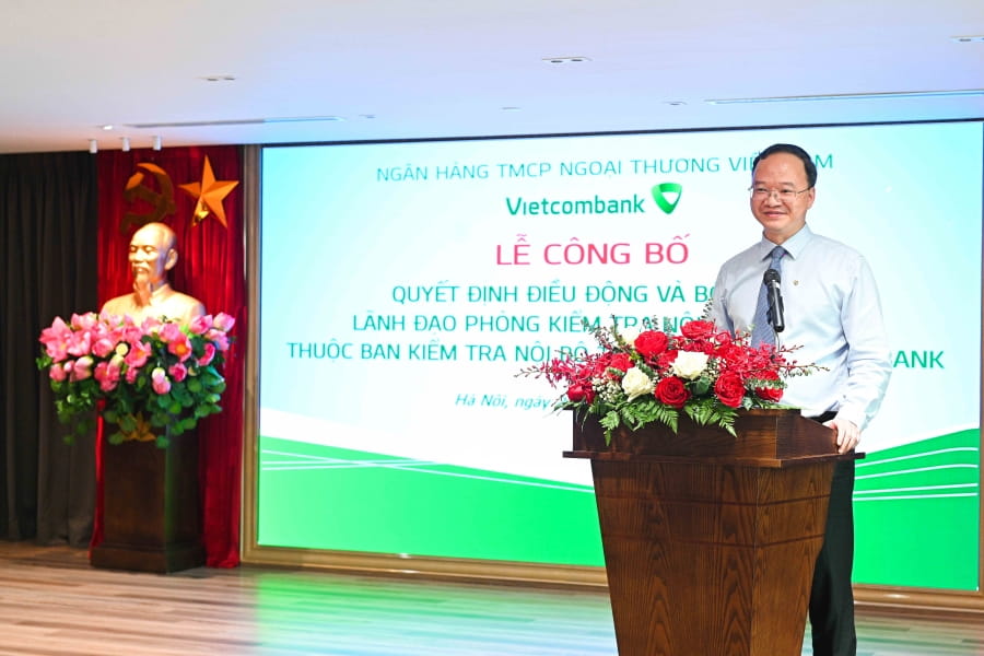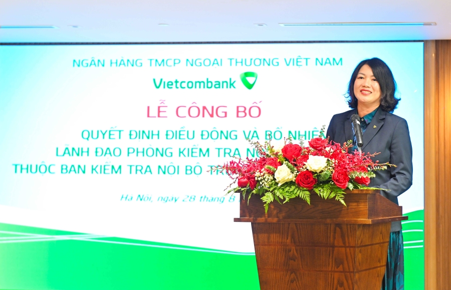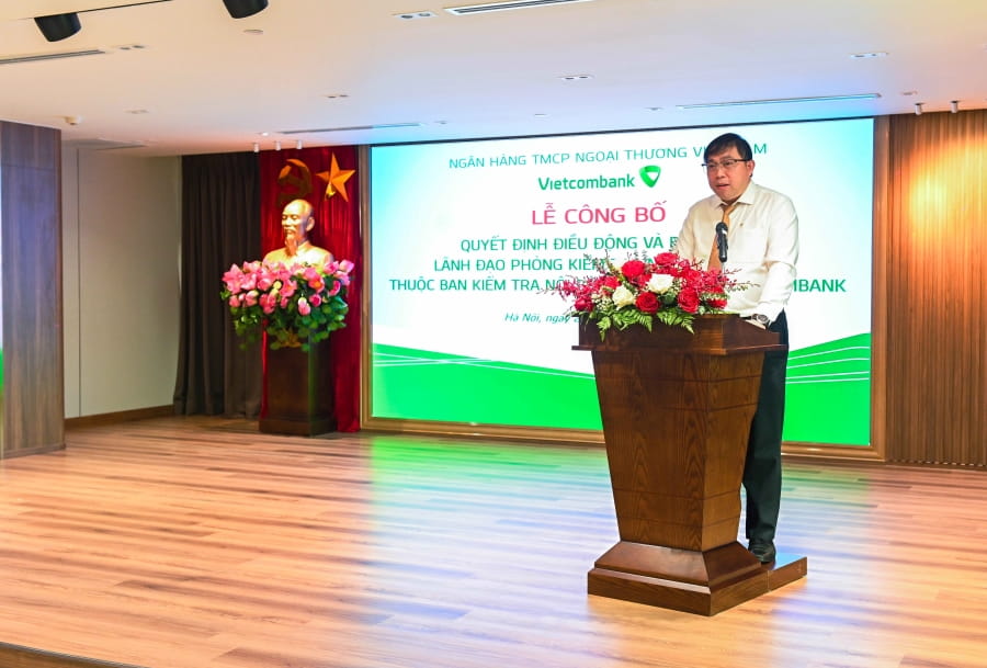 Ngày 28/8/2024, tại Trụ sở chính (TSC) Ngân hàng TMCP Ngoại thương Việt Nam (Vietcombank) đã diễn ra Lễ công bố quyết định điều động, bổ nhiệm nhân sự lãnh đạo các Phòng Kiểm tra nội bộ khu vực thuộc Ban Kiểm tra nội bộ TSC.