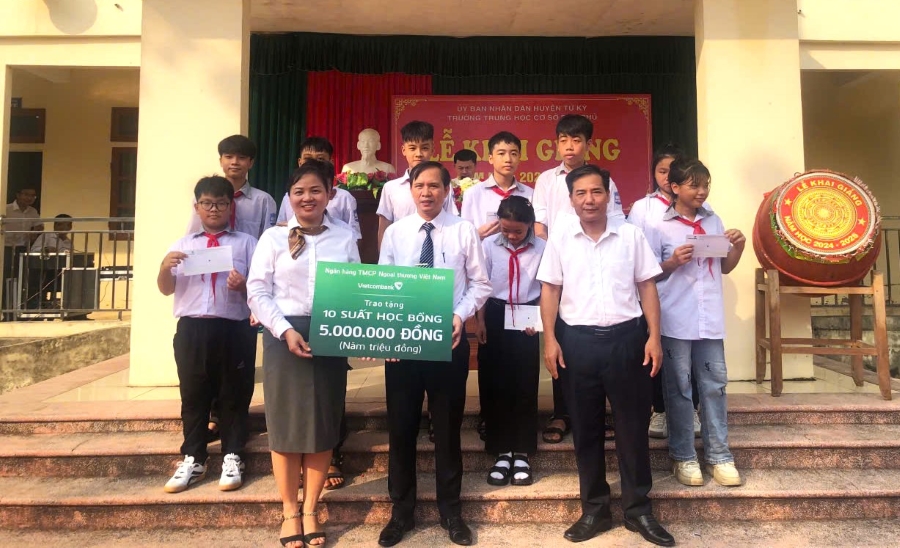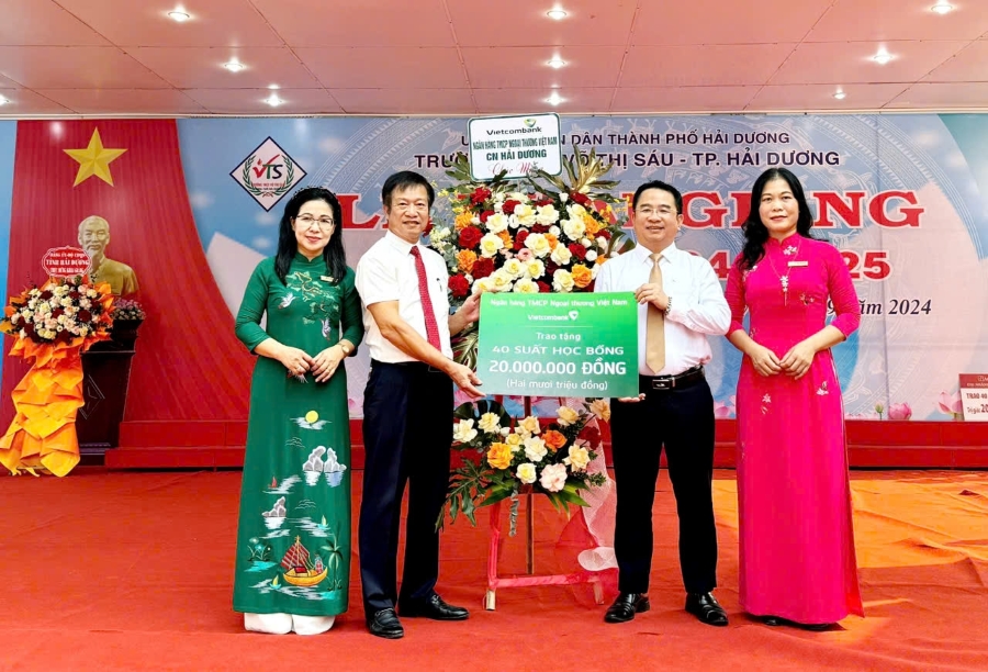 Cũng trong buổi sáng ngày 05/9/2024, Vietcombank Hải Dương đã dành tặng 80 suất học bổng cho các em học sinh có hoàn cảnh khó khăn tại các trường học trên địa bàn thành phố Hải Dương và các huyện lân cận với tổng số tiền trao tặng là 40 triệu đồng, trong đó: Trường Tiểu học An Thượng (20 suất), Trường THCS Võ Thị Sáu (40 suất), Trường Tiểu học Dân Chủ (10 suất), Trường THCS Dân Chủ, huyện Tứ Kỳ (10 suất), mỗi suất học bổng trị giá 500 nghìn đồng. Đây là hoạt động thường niên, góp phần chia sẻ khó khăn và tiếp thêm động lực cho các em học sinh vươn lên trong học tập.