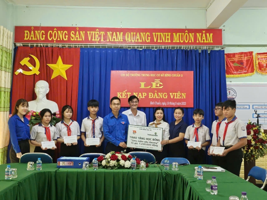 Đoàn thanh niên Vietcombank Bình Dương trao tặng học bổng cho các em học sinh tại trường THCS Bình Chuẩn 2, tỉnh Bình Dương