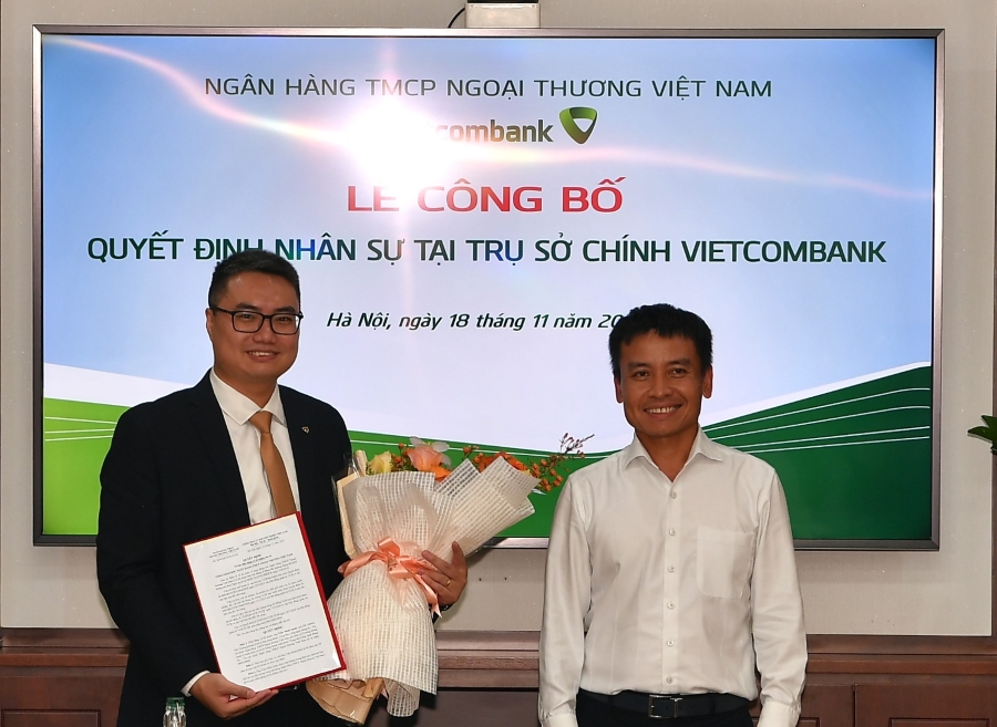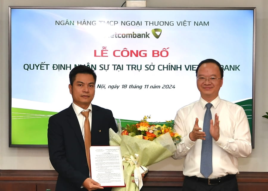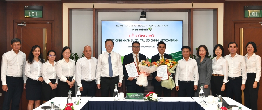 Tại buổi lễ, Vietcombank đã công bố quyết định của Tổng giám đốc về việc điều động và bổ nhiệm ông Nguyễn Hồng Thắng - Trưởng phòng Quản lý Kênh dịch vụ và Hệ thống thanh toán trực thuộc Trung tâm Công nghệ Thông tin TSC giữ chức vụ Phó Giám đốc Trung tâm Ngân hàng số; ông Trần Minh Quân - Phó Trưởng phòng Quản lý ứng dụng trực thuộc Trung tâm Công nghệ Thông tin TSC giữ chức vụ Trưởng phòng Quản lý Kênh dịch vụ và Hệ thống thanh toán trực thuộc Trung tâm Công nghệ Thông tin TSC. Các quyết định có hiệu lực kể từ ngày 18/11/2024.