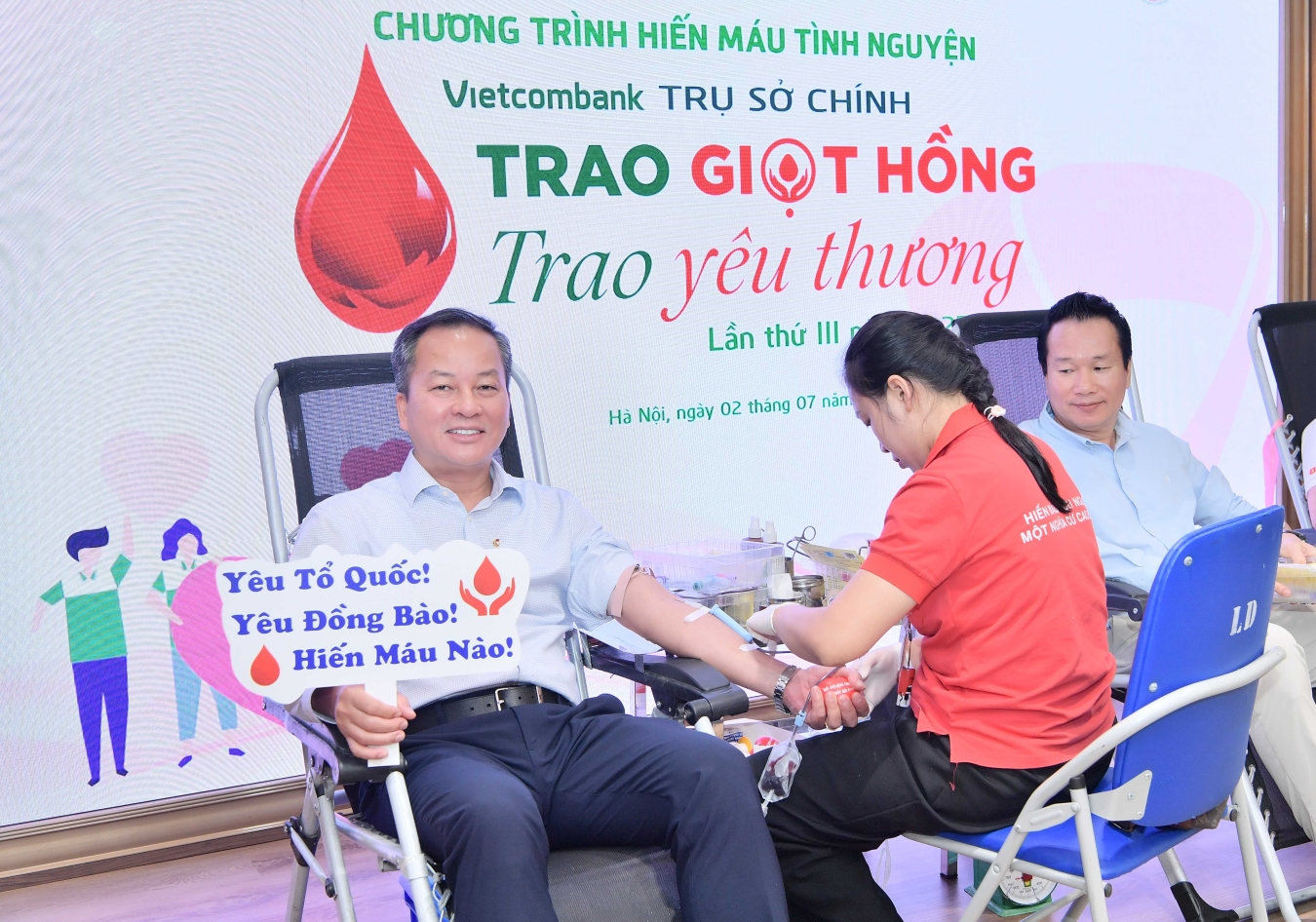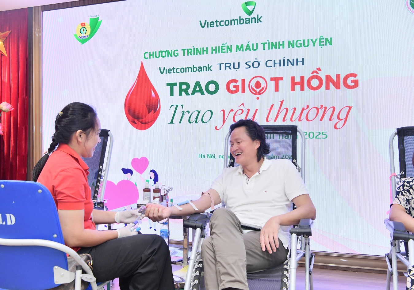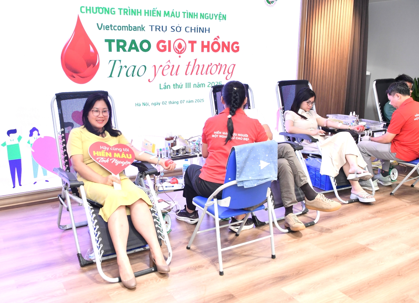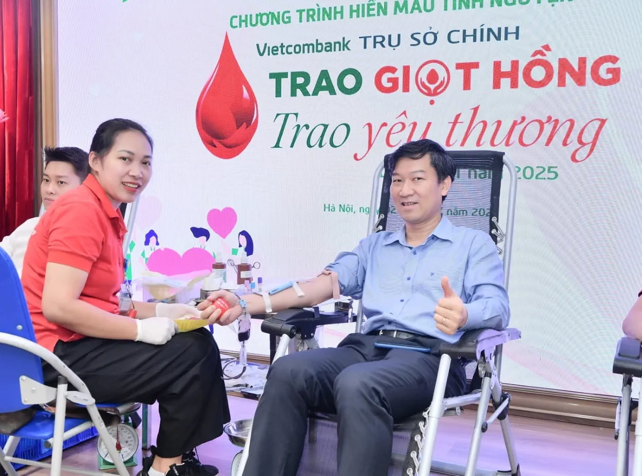 Sáng 02/7/2025, tại Trụ sở chính (TSC) Ngân hàng TMCP Ngoại thương Việt Nam (Vietcombank), Công Đoàn TSC và Đoàn Thanh niên TSC đã phối hợp với Viện Huyết học - Truyền máu Trung ương tổ chức chương trình hiến máu tình nguyện năm 2025 với chủ đề “Vietcombank: Trao giọt hồng - Trao yêu thương”.