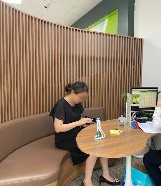 Khách hàng N.T.O đến Phòng giao dịch Kim Đồng – Vietcombank Nam Hà Nội đề thực hiện giao dịch và cảm ơn sau sự việc ngăn chặn lừa đảo.