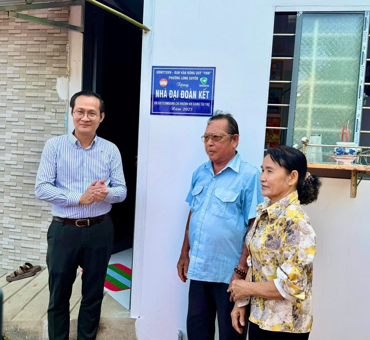 Hướng tới kỷ niệm 80 năm Cách mạng tháng Tám và Quốc khánh 2/9, sáng ngày 06/8/2025, Vietcombank An Giang đã tham gia cùng với Ủy ban MTTQ phường Long Xuyên tổ chức lễ bàn giao nhà đại đoàn kết cho gia đình ông Lê Phát Quang và bà Nguyễn Thị Hồng Tươi, ngụ tại số 216/3C, hẻm đường Nguyễn Bỉnh Khiêm, khóm Phó Quế.