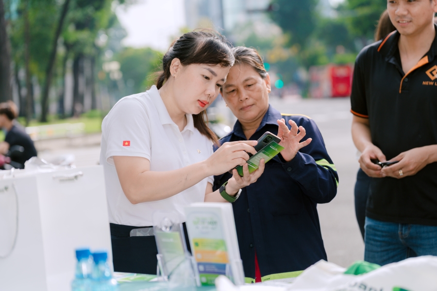 Đồng hành cùng chương trình, đại diện Vietcombank TP.HCM tư vấn, hỗ trợ nhân dân đăng ký dịch vụ ngân hàng