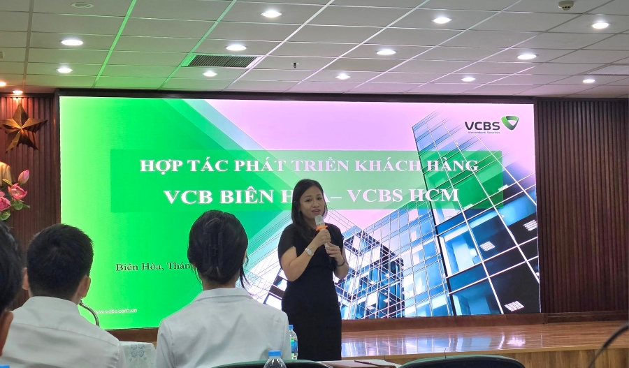 Tham dự buổi chia sẻ có bà Lê Ngọc Hiếu - Phó giám đốc VCBS Thành phố Hồ Chí Minh; ông Đỗ Vi Nhân - Phó giám đốc Vietcombank Biên Hòa; các cán bộ chủ chốt Phòng khách hàng của Công ty chứng khoán Vietcombank thành phố Hồ Chí Minh và hơn 80 cán bộ các phòng nghiệp vụ của Vietcombank Biên Hòa.