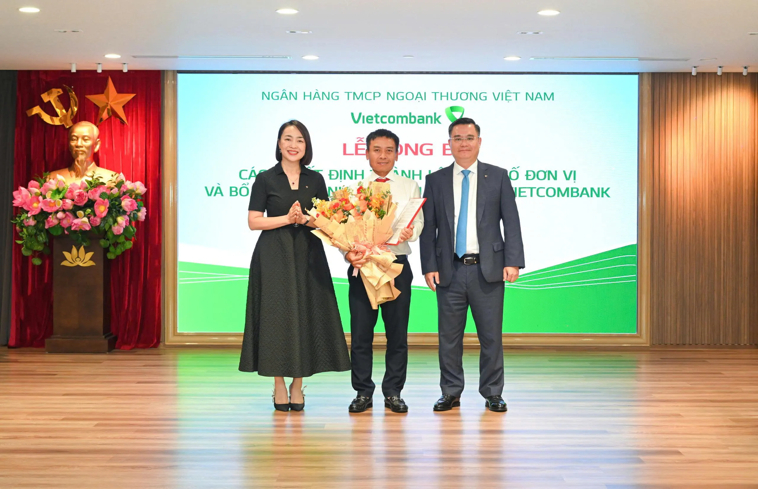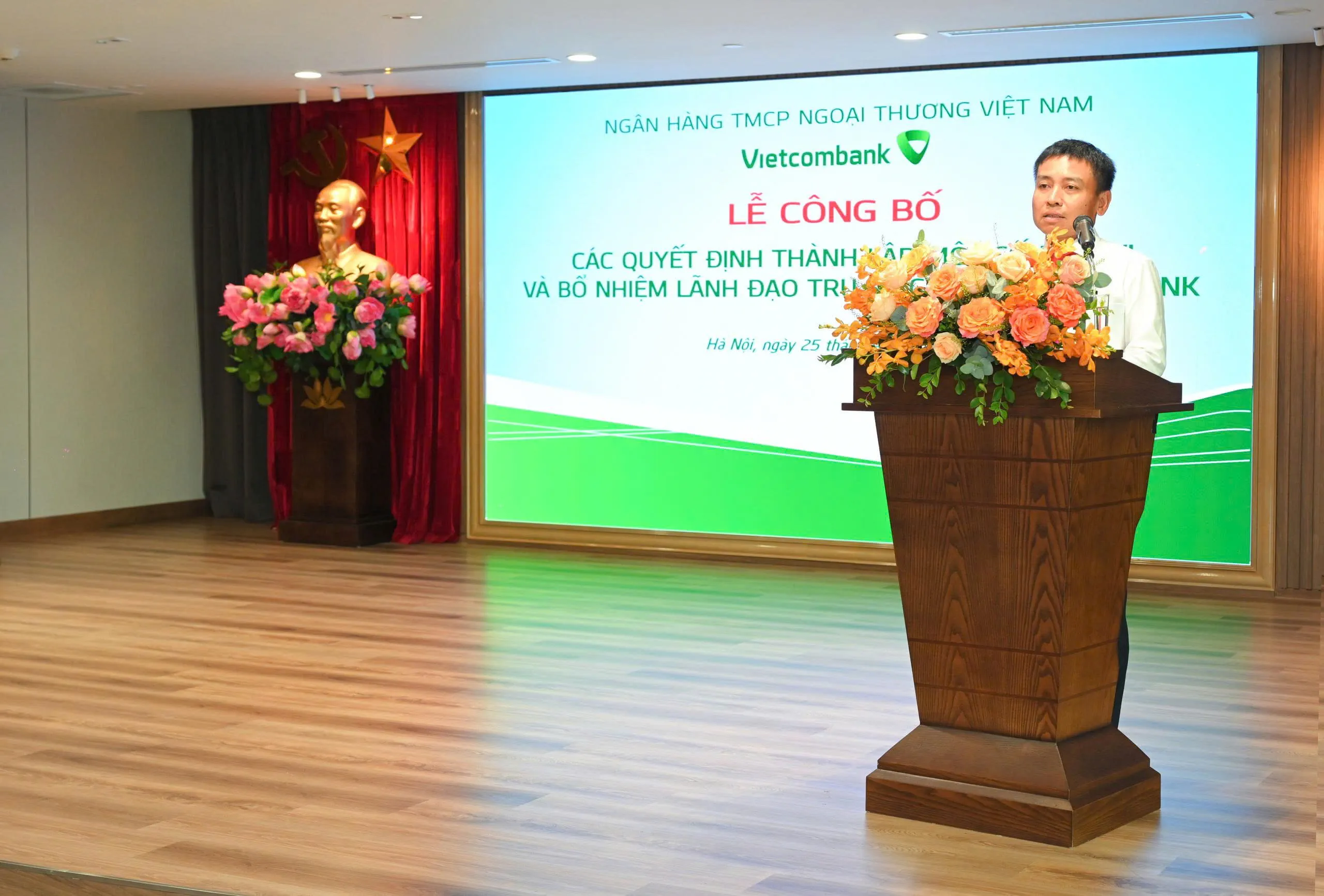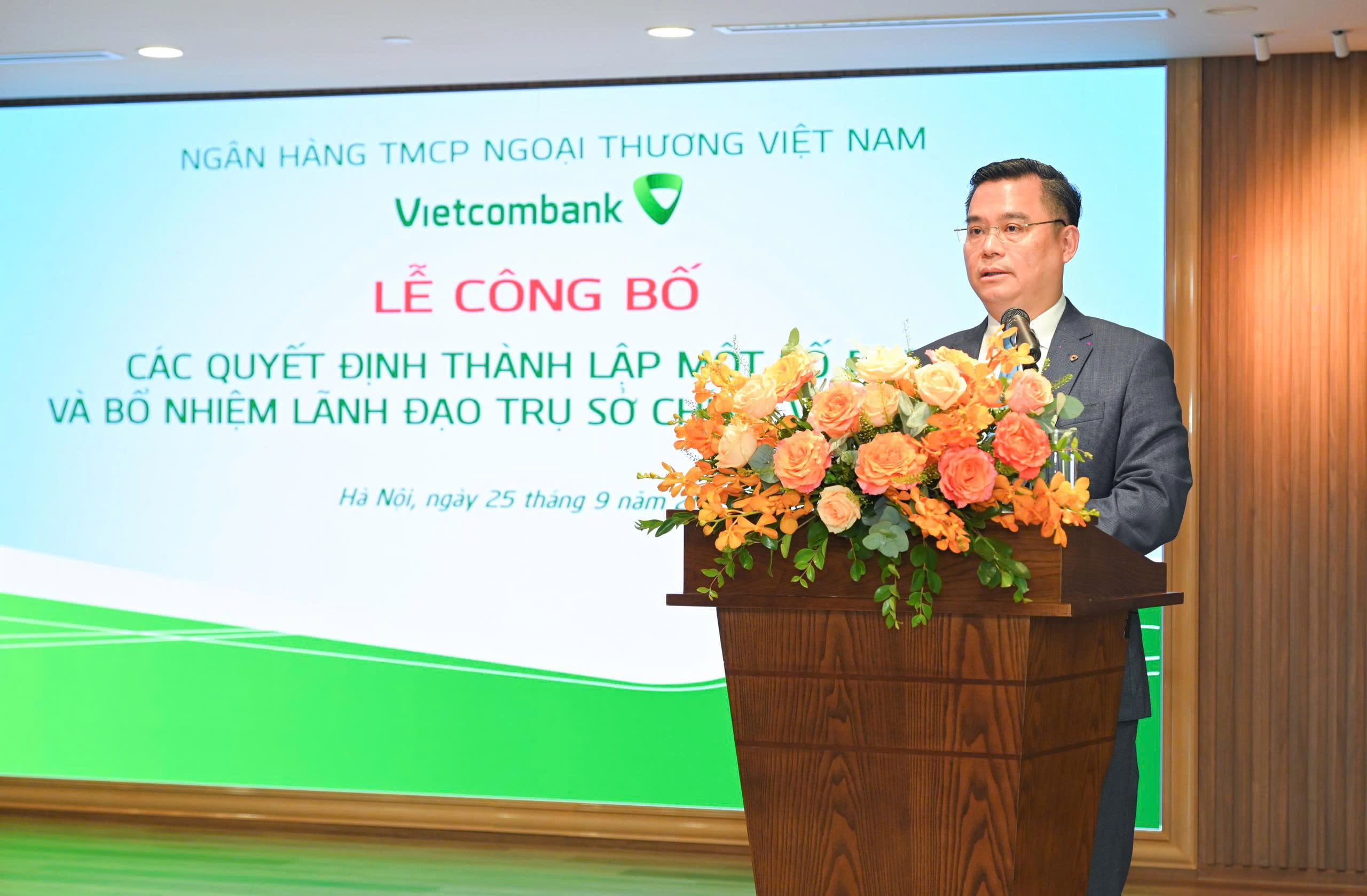 Tại buổi lễ, ông Nguyễn Kiên Hiếu - Phó Trưởng Ban Tổ chức & Nhân sự thông tin tới toàn thể đại biểu về việc Ban lãnh đạo Vietcombank đã kiện toàn tổ chức tại TSC với nhiều thay đổi quan trọng từ ngày 25/9/2025 nhằm nâng cao hiệu quả quản trị và tinh gọn bộ máy. Theo đó, Phòng Quản trị kết thúc hoạt động, sáp nhập vào Văn phòng. Ban Mua sắm và Quản lý Tài sản chấm dứt hoạt động sau khi hai đơn vị mới - Ban Mua sắm và Ban Thẩm định & Quản lý Tài sản - được thành lập để tập trung hóa công tác mua sắm, quản lý tài sản. Ban Marketing và Truyền thông được thành lập trên cơ sở hợp nhất Phòng Quan hệ Công chúng và Phòng Marketing Bán lẻ. Đây là những thay đổi theo định hướng sắp xếp, tinh gọn bộ máy của Đảng ủy, Ban lãnh đạo Vietcombank, quán triệt thực hiện chủ trương của Đảng nhằm tinh gọn, nâng cao hiệu lực, hiệu quả bộ máy, góp phần nâng cao hiệu quả hoạt động kinh doanh.