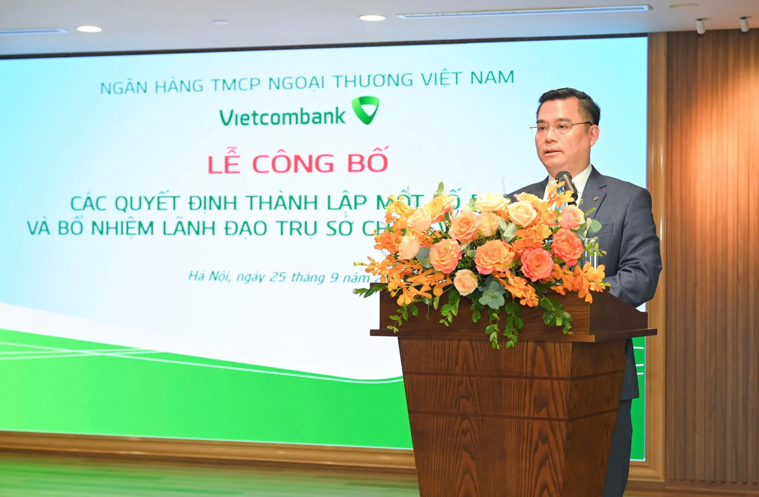 Ngày 25/9/2025, tại Trụ sở chính (TSC), 198 Trần Quang Khải, Hà Nội, Ngân hàng TMCP Ngoại thương Việt Nam (Vietcombank) đã tổ chức Lễ công bố sắp xếp một số đơn vị tại TSC và các quyết định nhân sự lãnh đạo liên quan.