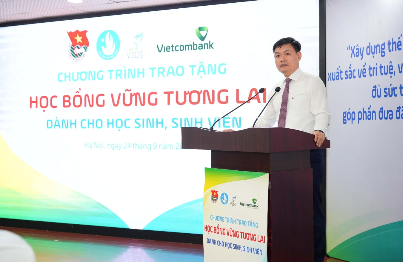 Phát biểu tại buổi lễ, đ/c Nguyễn Minh Triết - Bí thư Trung ương Đoàn, Chủ tịch Hội Sinh viên Việt Nam cho biết: Hiện nay, lực lượng thanh niên cũng đang nhận được sự quan tâm đặc biệt của Đảng, Nhà nước để thực hiện những mục tiêu trước mắt cũng như lâu dài của đất nước. Từ nghị quyết về khoa học công nghệ, đổi mới sáng tạo, chuyển đổi số cho tới nghị quyết về kinh tế tư nhân, hội nhập quốc tế, v.v., trong đó luôn có một yêu cầu về nguồn nhân lực chất lượng cao, và nguồn nhân lực chất lượng cao phần lớn đến từ lực lượng học sinh, sinh viên. Điều đó cho thấy sự quan tâm rất đặc biệt, tạo mọi điều kiện để các bạn học sinh, sinh viên học tập và trưởng thành. Trong bối cảnh đó, Quỹ Vững tương lai đã ra đời từ năm 2023, chính là sự hiện thực hóa thiết thực, là bước đi cụ thể hóa các chủ trương, nghị quyết lớn của Đảng, Nhà nước thành hành động đồng hành cùng với học sinh, sinh viên. Hy vọng các học bổng được trao hôm nay sẽ được sử dụng một cách có hiệu quả nhất để kiến thức sẽ trở thành lợi ích lớn nhất cho chính bản thân, cho gia đình và có thể tạo được thêm nhiều cơ hội trong cuộc sống của chính các bạn học sinh, sinh viên sau này.
