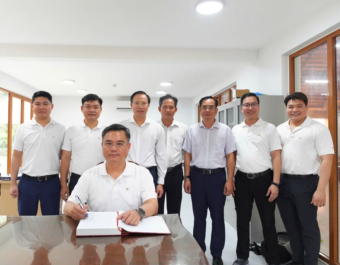 Đ/c Nguyễn Thanh Tùng - Uỷ viên BCH Đảng bộ Chính phủ, Bí thư Đảng ủy, Chủ tịch HĐQT - Trưởng đoàn công tác Đảng bộ Vietcombank trân trọng ghi lại những cảm xúc sâu sắc trong sổ cảm tưởng sau chuyến tham quan ý nghĩa và đầy tự hàoĐoàn công tác Đảng bộ Vietcombank chụp hình lưu niệm tại khu di tích