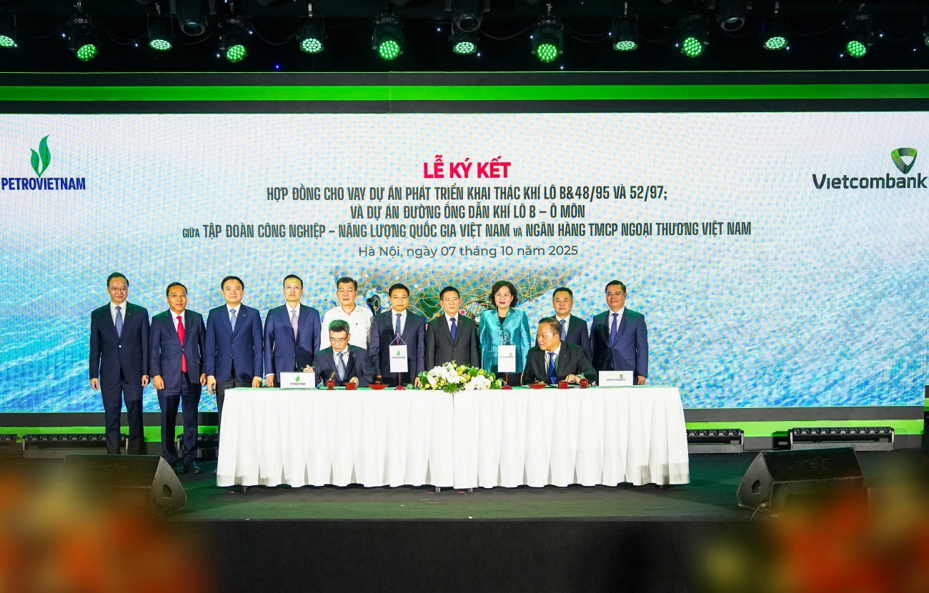 Ngày 07/10/2025 tại Hà Nội, Ngân hàng TMCP Ngoại thương Việt Nam (Vietcombank) và Tập đoàn Công nghiệp – Năng lượng Quốc gia Việt Nam (Petrovietnam) đã ký kết 02 hợp đồng tín dụng trị giá hơn 1 tỷ USD cho Dự án phát triển khai thác khí Lô B&48/95, Lô 52/97 và Dự án đường ống dẫn khí Lô B – Ô Môn.