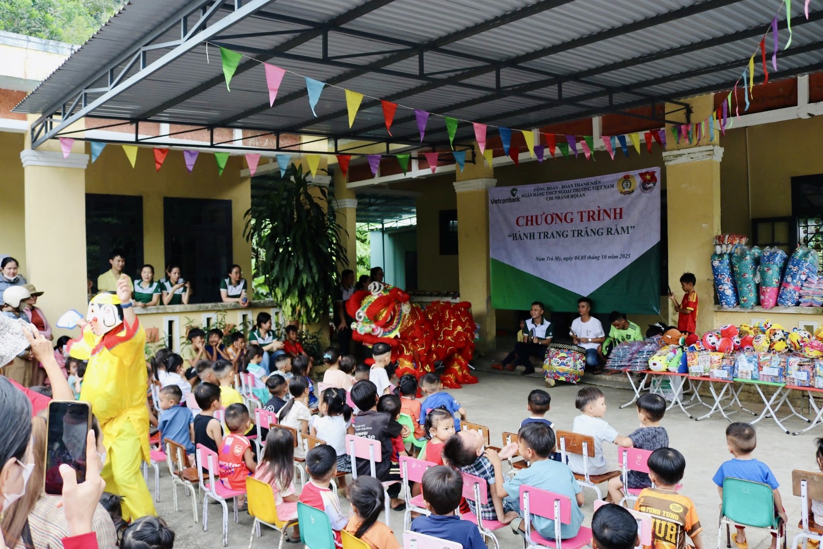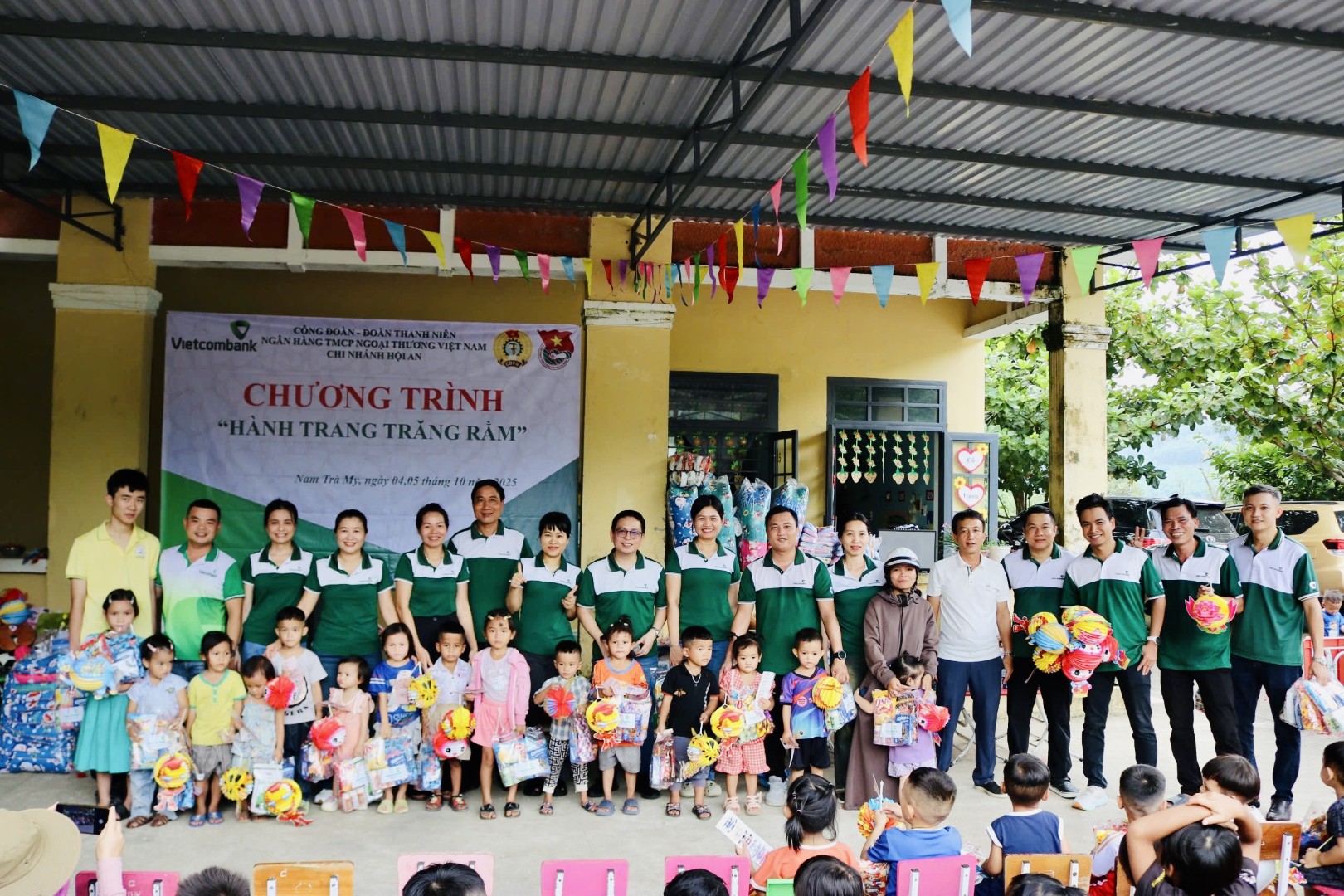 Sáng sớm ngày 4/10/2025, đoàn thiện nguyện của Công đoàn cơ sở Vietcombank Hội An cùng Chi Đoàn thanh niên khởi hành đến Điểm trường Nước Xa - Trường Tiểu học 24, xã Nam Trà My, thành phố Đà Nẵng. Chuyến đi mang tên thật đẹp “Hành trang trăng rằm” - cũng là hành trình mang ánh trăng yêu thương về với trẻ em vùng cao còn nhiều gian khó.