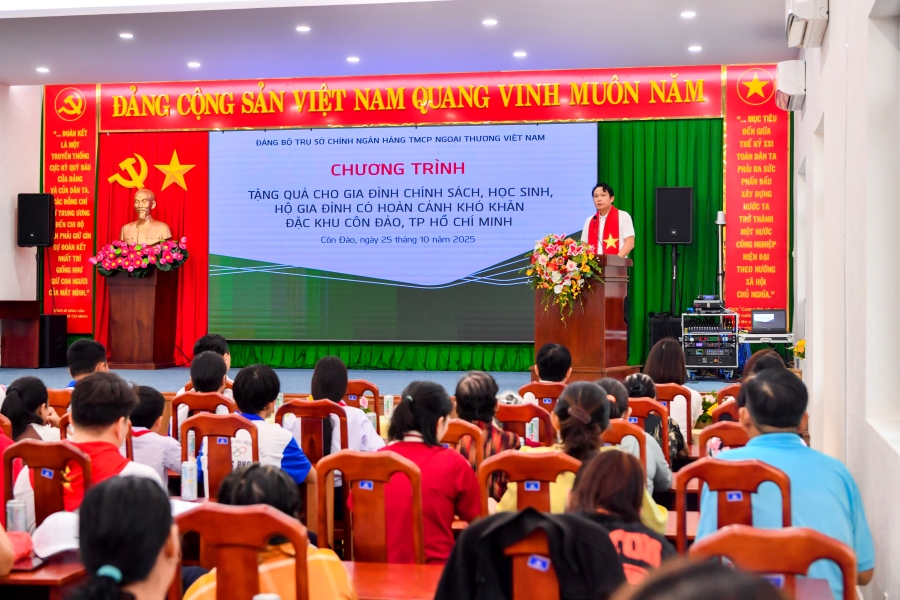 Trong hành trình tri ân - hướng về Côn Đảo, Đảng bộ Vietcombank trang trọng tổ chức chương trình tặng quà các gia đình chính sách, gia đình có công với cách mạng, học sinh có hoàn cảnh khó khăn.