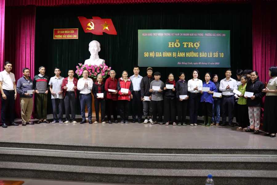 Thực hiện lời kêu gọi của Ủy ban Trung ương MTTQ Việt Nam về việc vận động ủng hộ đồng bào khắc phục thiệt hại do cơn bão số 10 gây ra, ngày 01/11/2025, đoàn công tác của Vietcombank Nam Hải Phòng đã phối hợp với lãnh đạo địa phương tổ chức trao quà cho bà con bị ảnh hưởng nặng nề do thiên tai, bão lụt tại các tỉnh Nghệ An và Hà Tĩnh.
