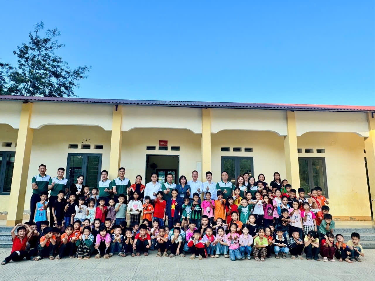 Đoàn Vietcombank Sở giao dịch chụp ảnh cùng các em học sinh tại điểm trường Tiểu học Cây Thị