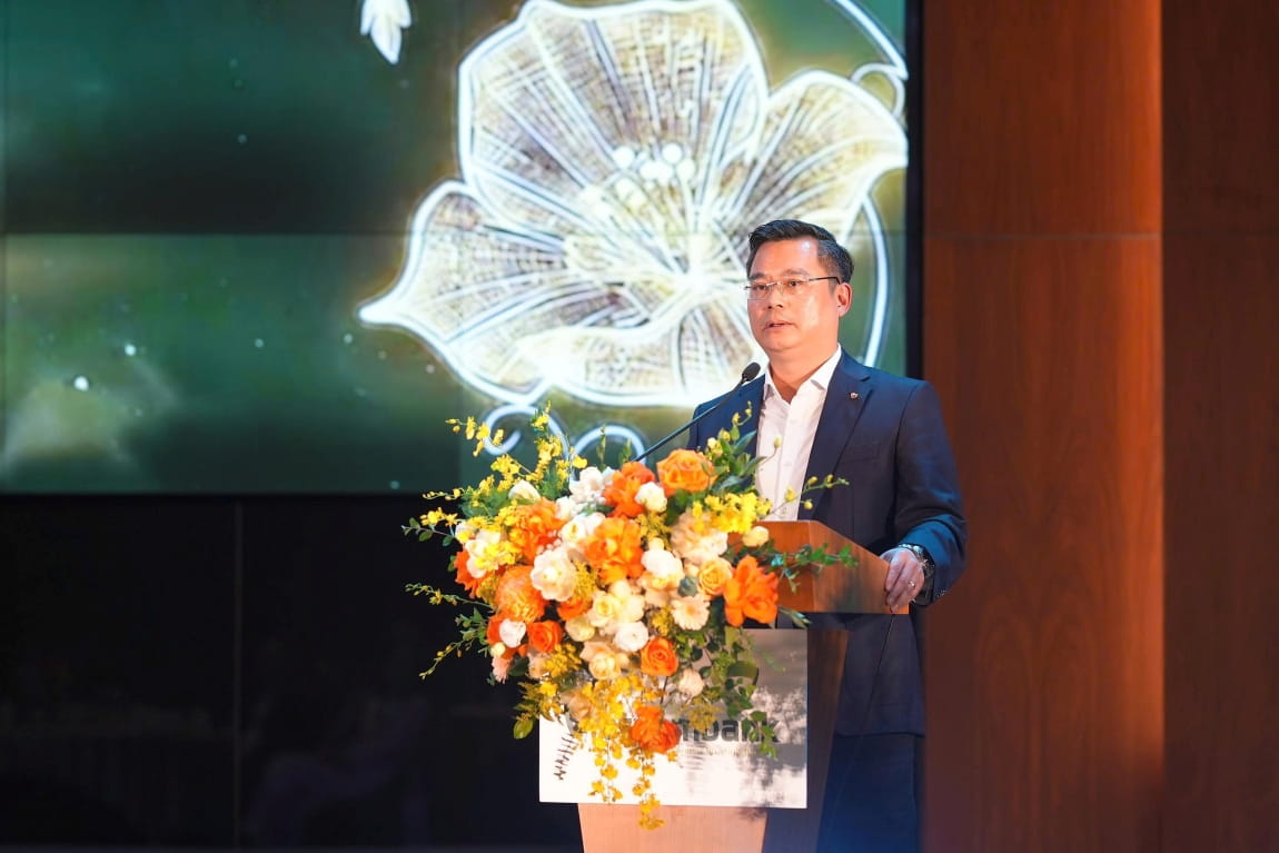 Đ/c Nguyễn Thanh Tùng - Ủy viên Ban Chấp hành Đảng bộ Chính phủ, Bí thư Đảng ủy, Chủ tịch HĐQT Vietcombank phát biểu tại buổi lễ