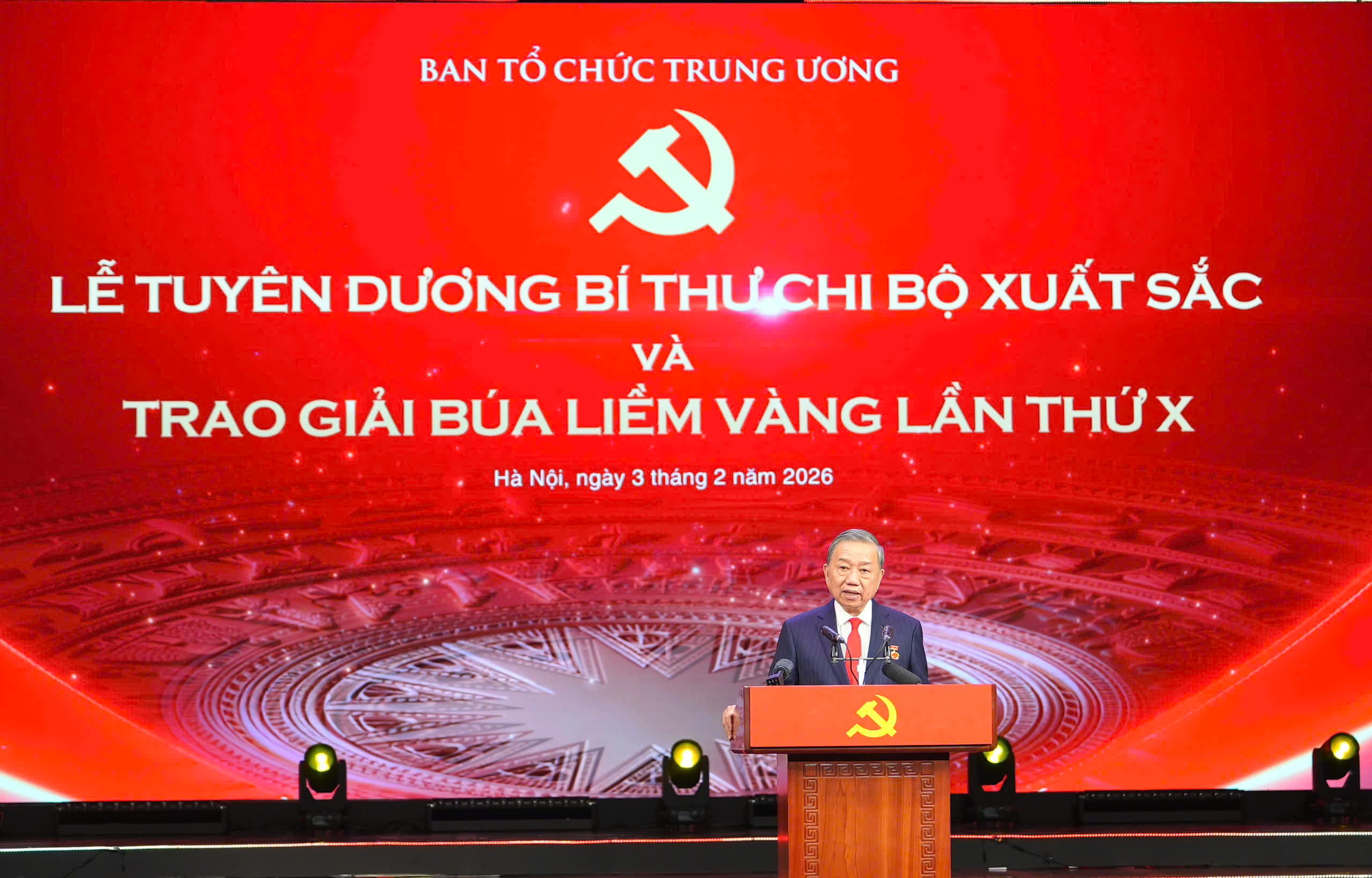 Lễ trao giải năm nay đặc biệt ý nghĩa khi ghi dấu chặng đường 10 năm của Giải Búa Liềm Vàng, đồng thời kết hợp cùng Lễ tuyên dương Bí thư Chi bộ xuất sắc toàn Đảng, được tổ chức vào thời điểm hết sức ý nghĩa, trong không khí phấn khởi, tin tưởng của toàn Đảng, toàn dân, toàn quân và đồng bào ta ở nước ngoài, ngay sau thành công rất tốt đẹp của Đại hội Đại biểu toàn quốc lần thứ 14 của Đảng và đúng vào dịp kỷ niệm 96 năm Ngày thành lập Đảng Cộng sản Việt Nam (3/2/1930 - 3/2/2026). Sự kiện có sự tham dự của các đồng chí lãnh đạo cao nhất của Đảng và Nhà nước: Tổng Bí thư Tô Lâm cùng các đồng chí Ủy viên Bộ Chính trị, Ủy viên BCH Trung ương Đảng khóa XIV.