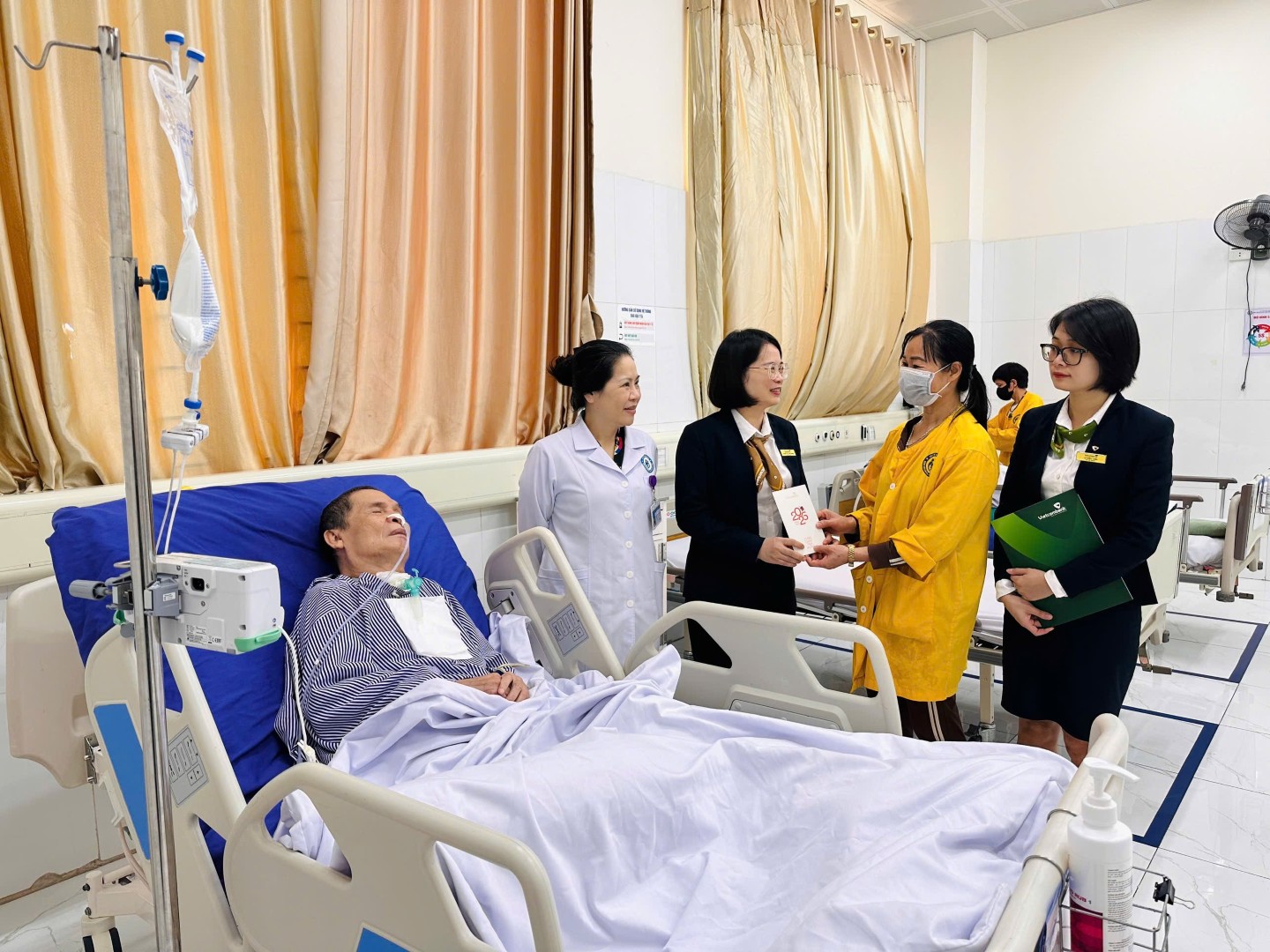 Bên cạnh đó, Chi nhánh đã phối hợp với các cơ sở y tế trên địa bàn thăm hỏi, tặng quà cho các bệnh nhân có hoàn cảnh khó khăn đang điều trị nội trú. Sự quan tâm, sẻ chia của cán bộ Vietcombank Quảng Ninh đã mang đến không khí mùa xuân ấm áp, giúp người bệnh vơi bớt lo âu, thêm nghị lực vượt qua bệnh tật để đón Tết trong yêu thương, đầm ấm.