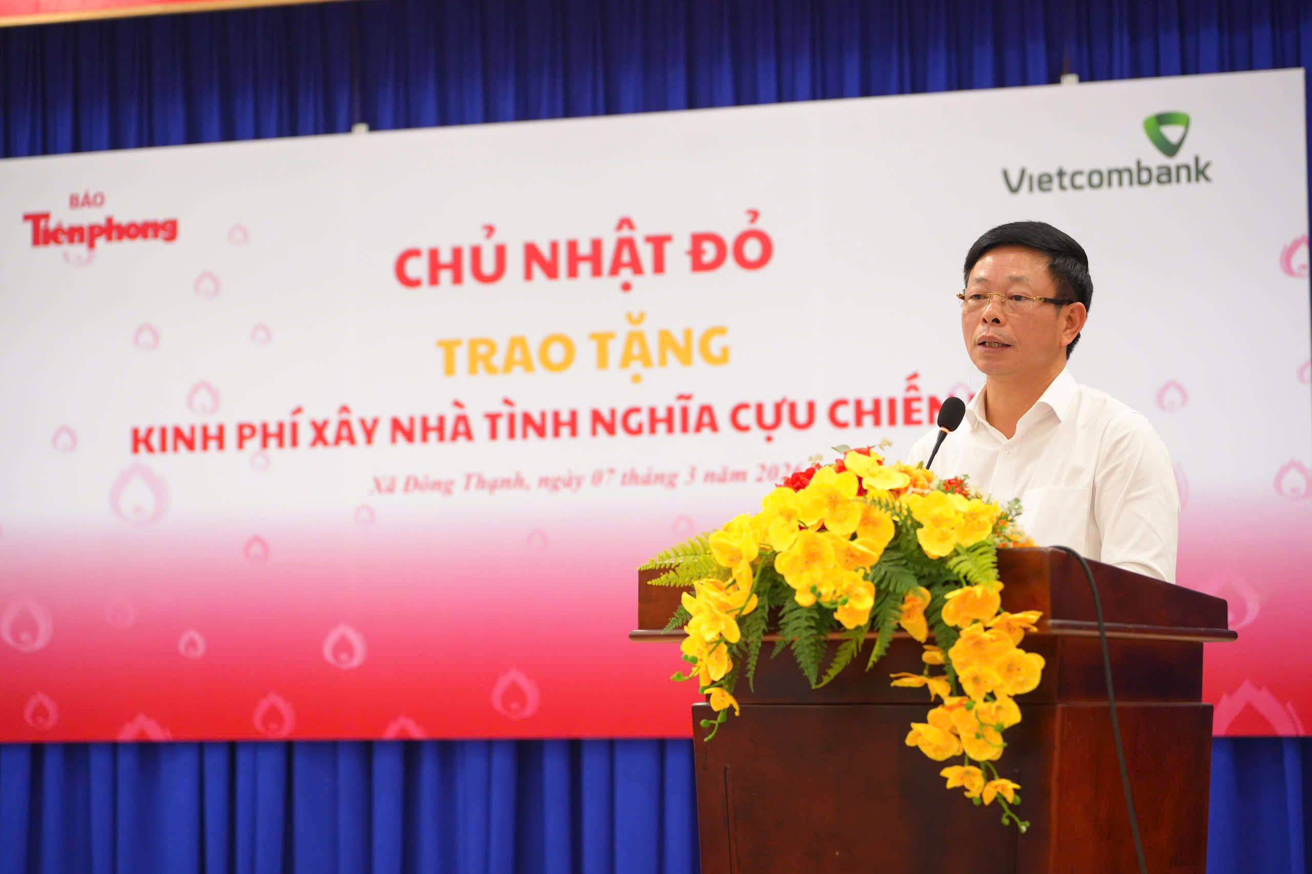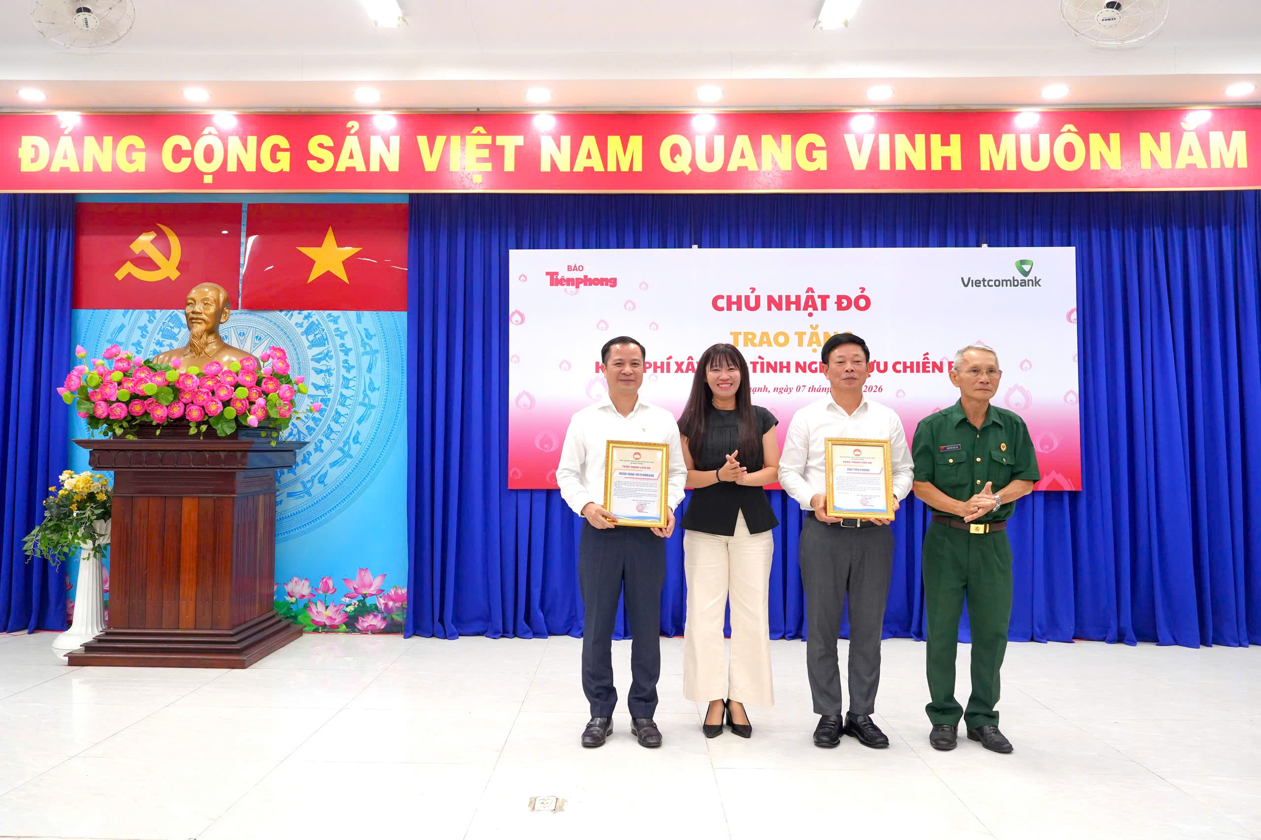 Ngày 07/03/2026, tại xã Đông Thạnh và xã Củ Chi (TP. Hồ Chí Minh), Báo Tiền Phong phối hợp cùng chính quyền địa phương tổ chức lễ trao tặng kinh phí xây dựng 06 căn nhà tình nghĩa cho các gia đình cựu chiến binh có hoàn cảnh khó khăn. Chương trình có sự đồng hành tài trợ của Ngân hàng TMCP Ngoại thương Việt Nam (Vietcombank) với tổng kinh phí 600 triệu đồng, góp phần lan tỏa tinh thần tri ân và trách nhiệm xã hội đối với những người có công với đất nước.