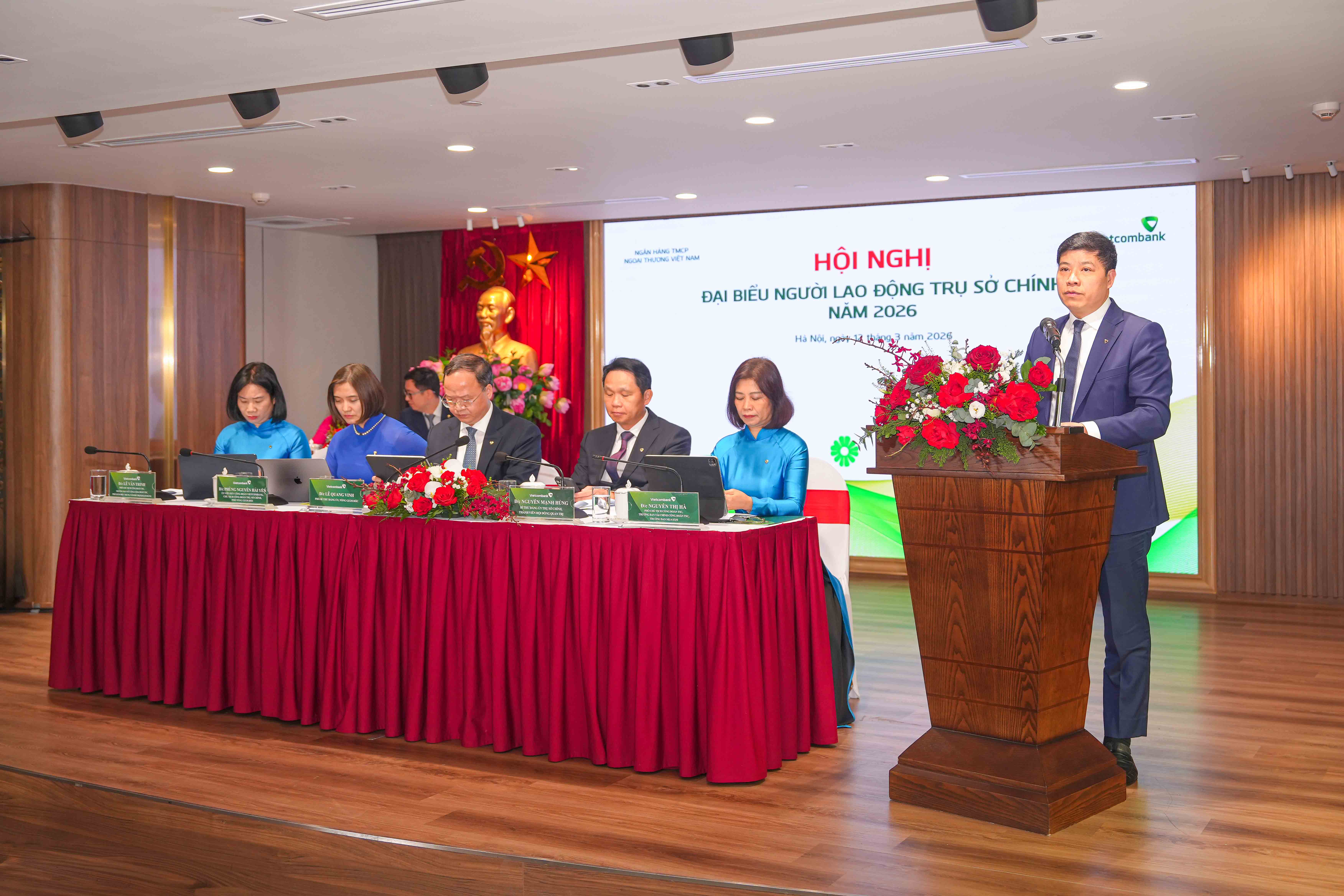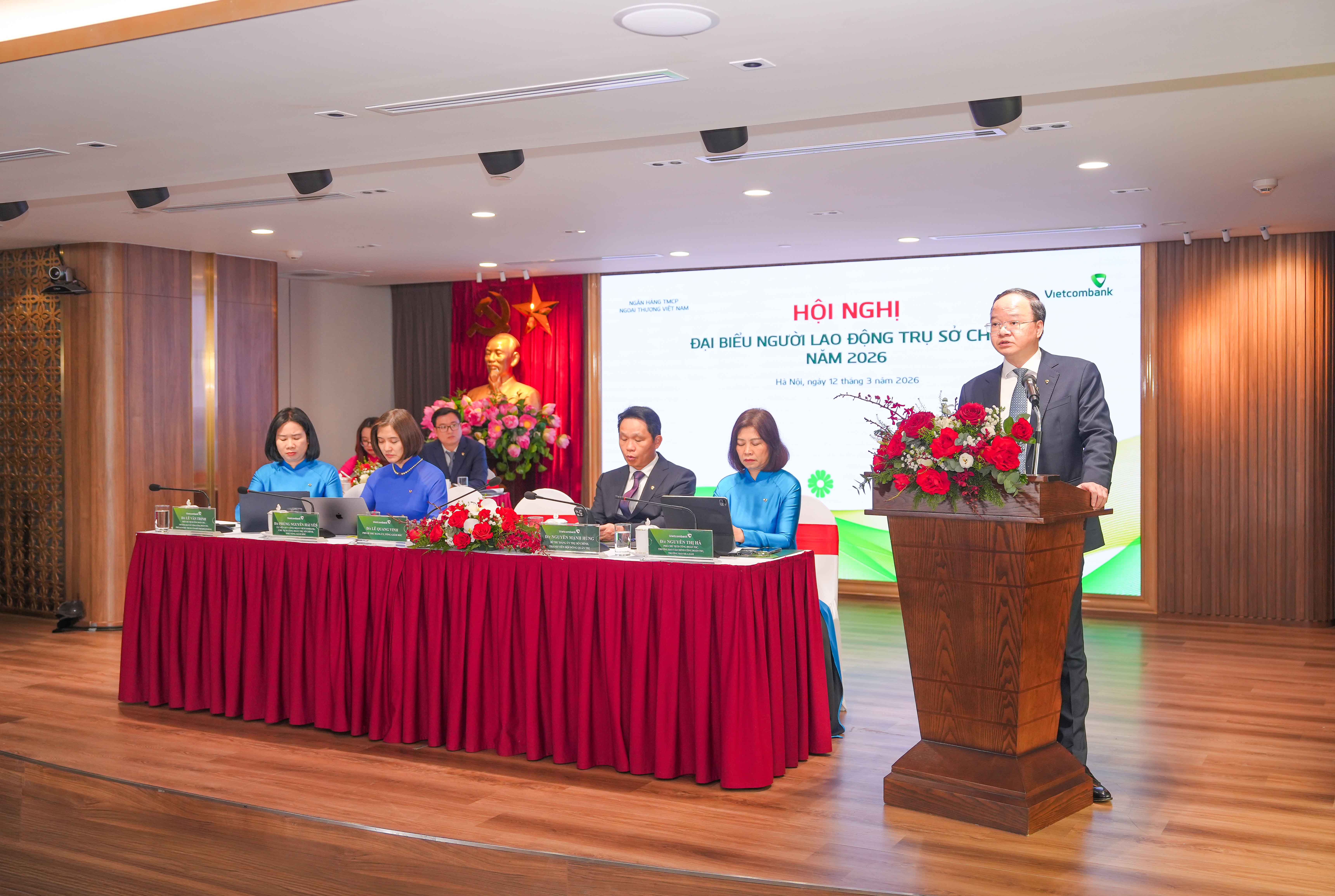 Sáng ngày 12/3/2026, tại Hà Nội, Trụ sở chính (TSC) Ngân hàng TMCP Ngoại thương Việt Nam (Vietcombank) đã tổ chức thành công Hội nghị đại biểu Người lao động (NLD) năm 2026 dưới hình thức trực tiếp kết hợp truyền hình hội nghị.