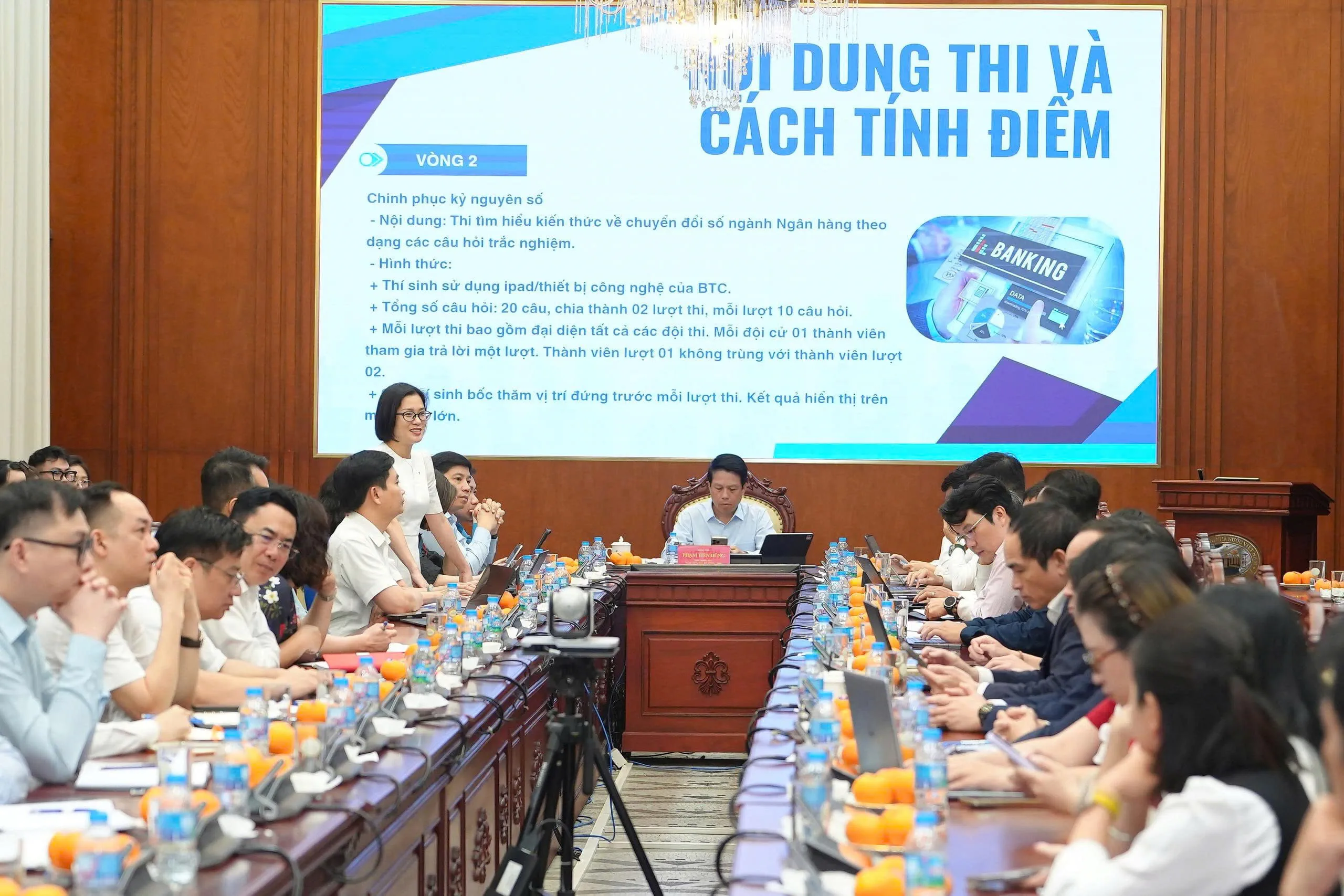 Với chủ đề “Chủ động số hóa - Bứt phá tương lai”, Hội thi là hoạt động thiết thực chào mừng 75 năm thành lập Ngân hàng Việt Nam (06/5/1951 – 06/5/2026) và hưởng ứng Ngày Chuyển đổi số ngành Ngân hàng 11/5 hàng năm. Hội thi sẽ diễn ra trong hai ngày 22–23/5/2026 tại Cung Văn hóa Lao động hữu nghị Việt Xô, với sự tham gia của 32 đội thi. Nội dung thi tập trung tìm hiểu, cập nhật các quy định của Nhà nước về chuyển đổi số; làm rõ tầm quan trọng, ý nghĩa và giá trị của chuyển đổi số đối với công tác quản lý, điều hành và phát triển kinh tế – xã hội; đồng thời phổ biến các quy định, định hướng và yêu cầu của Chương trình chuyển đổi số quốc gia, chuyển đổi số ngành Ngân hàng, góp phần giúp cán bộ, công chức, viên chức, người lao động ngành Ngân hàng hiểu đúng, nắm chắc chủ trương và định hướng chung. Khuyến khích các đơn vị nghiên cứu, đề xuất các giải pháp, sáng kiến chuyển đổi số gắn với thực tiễn hoạt động; tìm kiếm và lan tỏa các phương thức quản trị nội bộ hiện đại, tối ưu hóa quy trình, nâng cao năng suất lao động, gia tăng tiện ích, chất lượng sản phẩm, dịch vụ và trải nghiệm của khách hàng trong môi trường số.