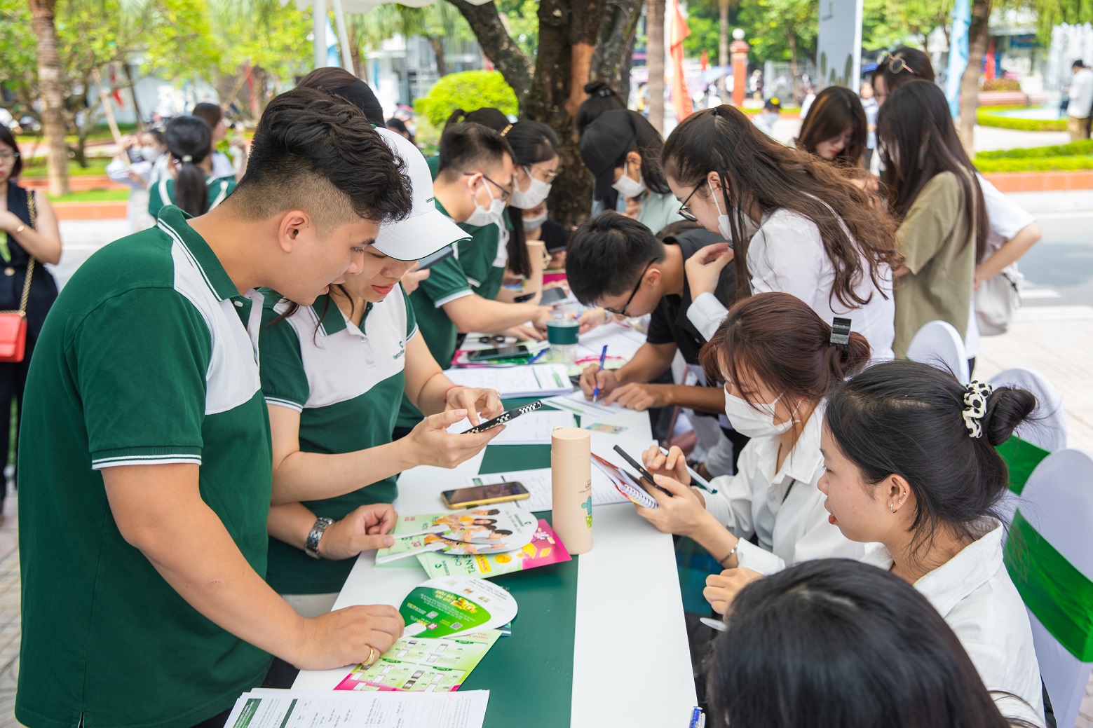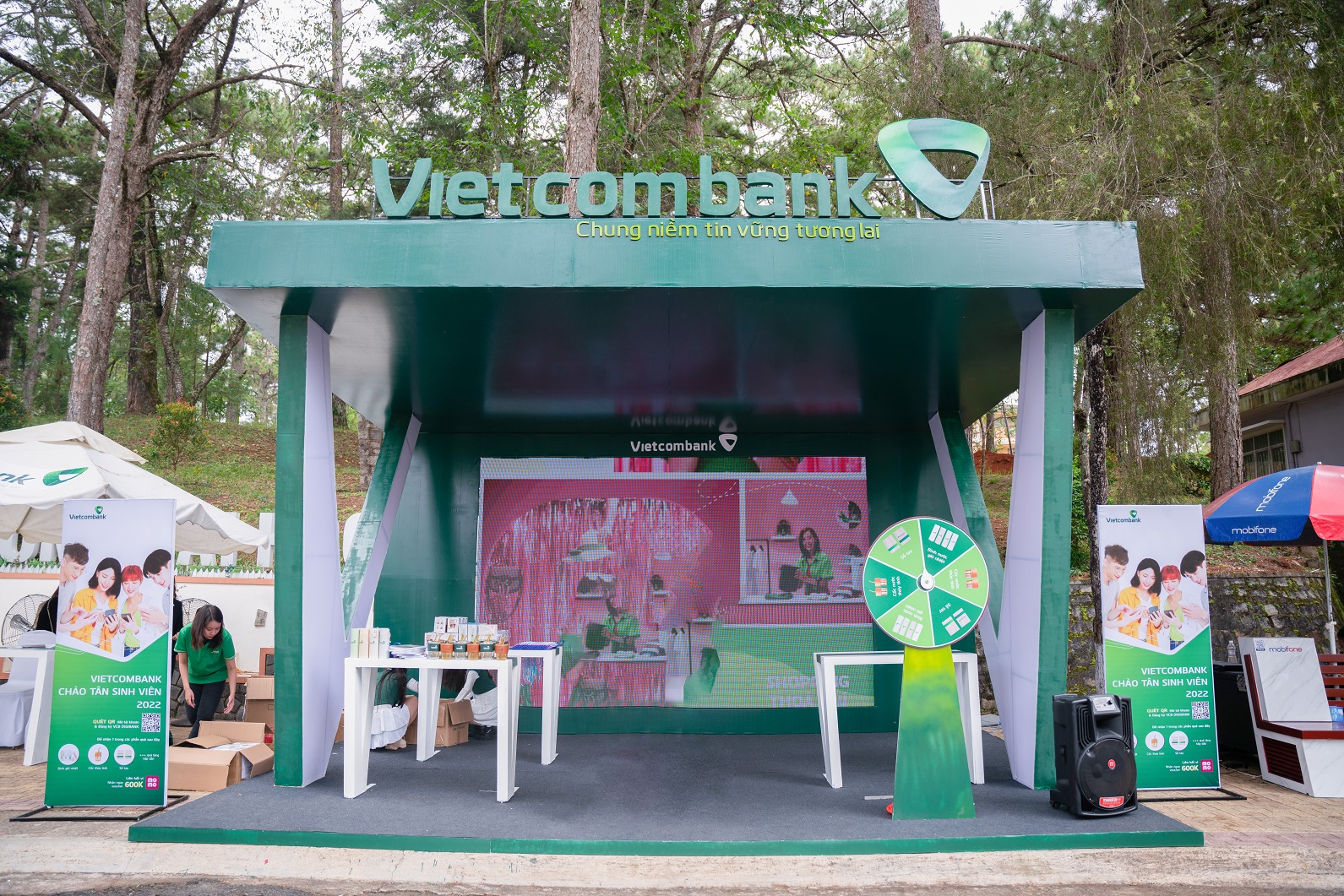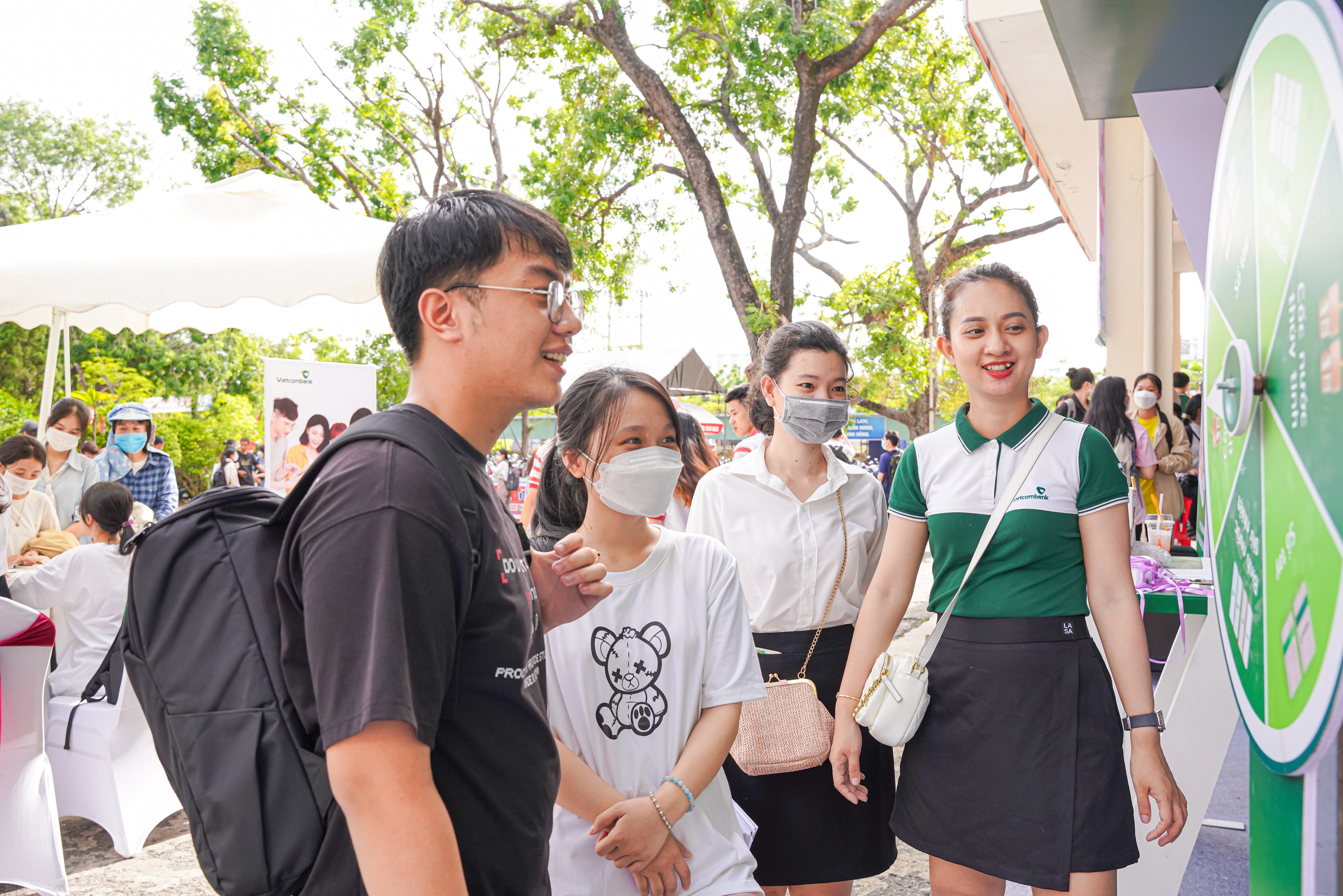 Sinh viên sau khi mở tài khoản và đăng ký VCB Digibank thông qua hình thức eKYC thành công sẽ được tham gia vòng quay may mắn để nhận 1 trong các phần quà: bình nước giữ nhiệt, cốc thủy tinh, sổ viết... Ngoài ra, các bạn sinh viên cũng có cơ hội tham gia nhiều gameshow tại gian hàng để nhận quà.
