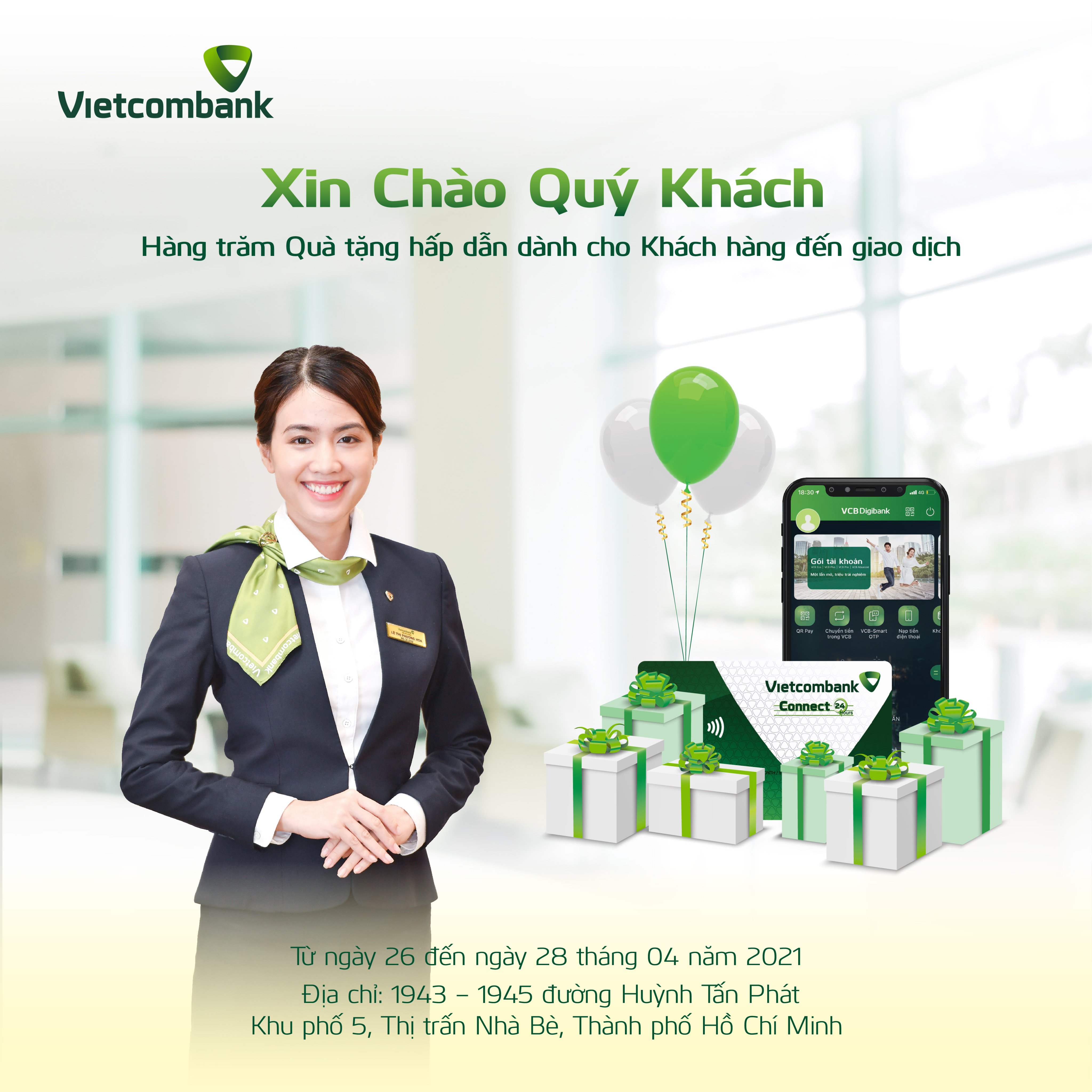 “Vietcombank Xin Chào Quý khách” nằm trong chuỗi sự kiện do Vietcombank tổ chức, nhằm giới thiệu các sản phẩm, dịch vụ đa dạng với lợi thế cạnh tranh và ưu đãi hấp dẫn đến đông đảo người dân thị trấn Nhà Bè nói riêng và thành phố Hồ Chí Minh nói chung.