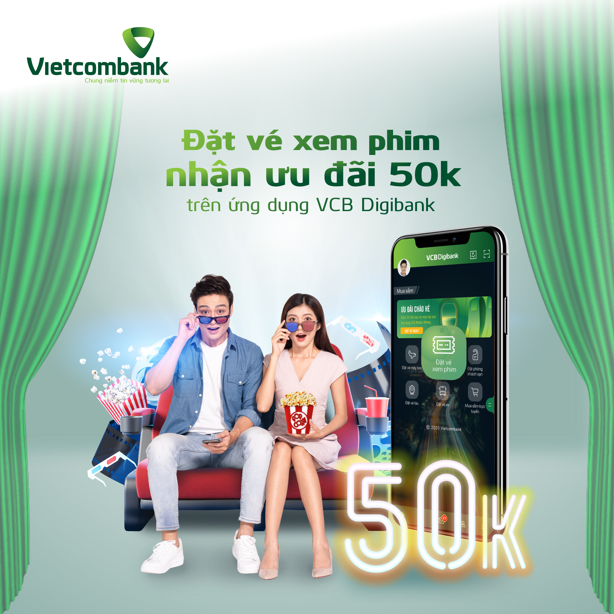Đặc biệt, từ nay đến hết 25/10/2020, khi đặt vé xem phim trên ứng dụng VCB Digibank, khách hàng sẽ nhận ngay 50.000đ cho mỗi giao dịch đặt vé xem phim có giá trị từ 100.000đ trở lên.