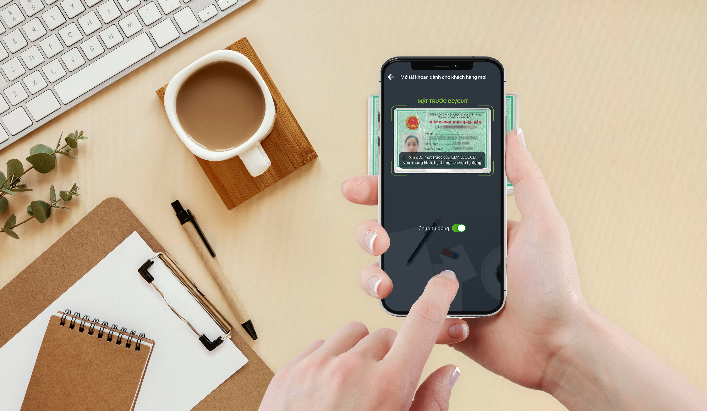 Để mở tài khoản trực tuyến, khách hàng chỉ cần tải ứng dụng Vietcombank trên các chợ ứng dụng Appstore/Google Play, nhập số điện thoại, thực hiện chụp ảnh giấy tờ tùy thân (chứng minh nhân dân/căn cước công dân hoặc hộ chiếu), xác thực khuôn mặt là có ngay tài khoản để sử dụng.