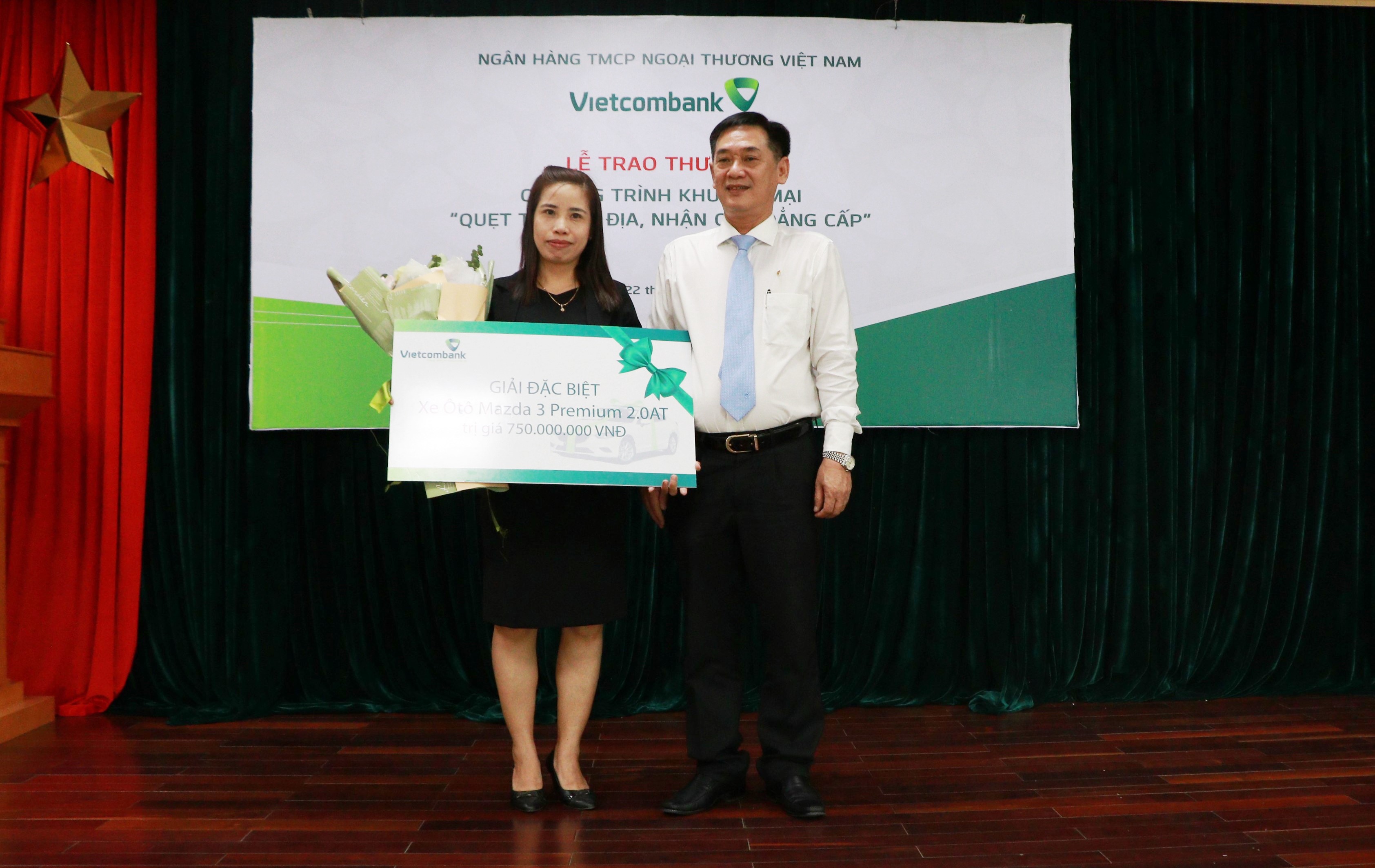 Chương trình khuyến mại “Quẹt thẻ nội địa, nhân quà đẳng cấp” diễn ra từ ngày 21/10/2019 đến 15/12/2019 và bà Nguyễn Thị Hồng Phấn là khách hàng của Vietcombank Tây Ninh đã may mắn trúng giải Đặc biệt là 01 xe Mazda 3, Premium 2.0AT, trị giá 750 triệu đồng.