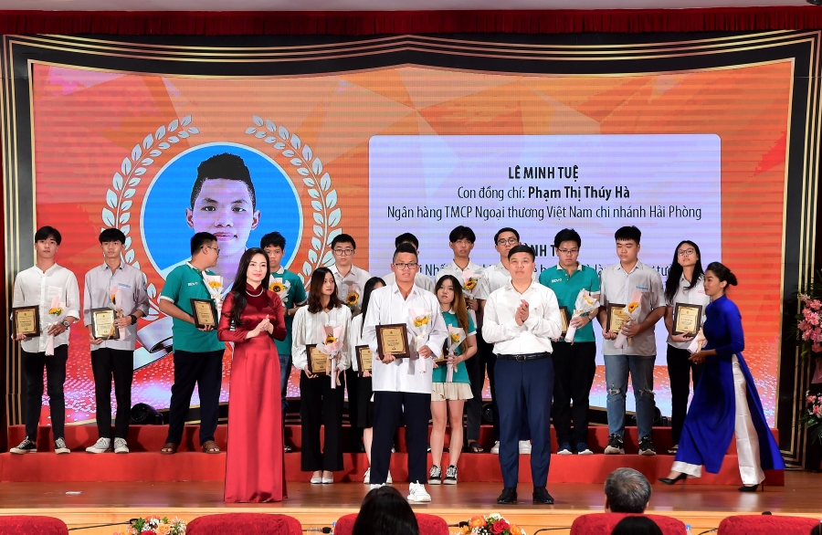 | 8 | Lê Minh Tuệ - Trường THCS Hồng Bàng, Hải Phòng | - Giải Nhất toàn quốc cuộc thi "Tuổi trẻ học tập và làm theo tấm gương đạo đức, phong cách Hồ Chí Minh" năm 2020 - Huy chương Đồng giải bơi học sinh phổ thông toàn quốc năm 2020 | Phạm Thị Thúy Hà - Trưởng PGD Phạm Ngũ Lão Vietcombank Hải Phòng |