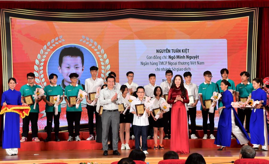 Đại diện Công đoàn Vietcombank, ông Hồng Quang - Thành viên HĐQT kiêm Giám đốc Khối Nhân sự, Chủ tịch Công đoàn đã có buổi gặp mặt và tặng quà kỷ niệm tới 13 HSSV cùng gia đình trong không gian vui vẻ, đầm ấm. Ông Hồng Quang - Thành viên HĐQT kiêm Giám đốc Khối Nhân sự, Chủ tịch Công đoàn đã phát biểu tuyên dương các thành tích, động viên khích lệ tinh thần các HSSV tiếp tục cố gắng phấn đấu giành thành tích cao hơn, chia sẻ và giúp đỡ bạn bè, anh em chăm ngoan học giỏi để bố mẹ yên tâm công tác: “Trong nhiều năm qua, Công đoàn Vietcombank đã có nhiều hoạt động ý nghĩa để chăm lo cho cán bộ, đoàn viên công đoàn và người thân của cán bộ, đoàn viên công đoàn Vietcombank. Đặc biệt, Vietcombank luôn dành sự quan tâm bằng những hành động thiết thực, cụ thể nhằm động viên, khuyến khích, tuyên dương và khen thưởng kịp thời các cháu HSSV là con của cán bộ, đoàn viên công đoàn Vietcombank có thành tích xuất sắc, tiêu biểu trong học tập, rèn luyện. Sự quan tâm này vừa là nguồn động viên, khích lệ tinh thần CBNV vừa thể hiện sự quan tâm đến thế hệ tương lai của Vietcombank và của đất nước. Thành tích mà các cháu đạt được không chỉ là niềm vui, niềm tự hào của các cháu mà còn là niềm vinh dự, tự hào chung của các bố mẹ và của Vietcombank. Công đoàn Vietcombank mong muốn các cháu HSSV tiếp tục tu dưỡng, rèn đức, luyện tài không ngừng nỗ lực học tập, rèn luyện để đạt được những thành tích cao hơn, có nhiều cháu được tuyên dương hơn nữa xứng đáng với sự tin yêu, quan tâm, chăm sóc của gia đình, nhà trường, của Vietcombank và toàn xã hội”.