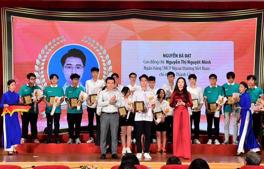 Thành công mà các cháu đạt được ngày hôm nay mới chỉ là bước đầu, ông Hồng Quang - Thành viên HĐQT kiêm Giám đốc Khối Nhân sự, Chủ tịch Công đoàn Vietcombank tin rằng buổi gặp mặt, tuyên dương này thật sự có ý nghĩa, là động lực mạnh mẽ để các cháu tiếp tục nỗ lực vươn lên chinh phục, chiếm lĩnh những đỉnh cao tri thức, khoa học và hoàn thiện bản thân để sau này các cháu trở thành những chủ nhân tương lai của đất nước, những công dân có ích cho xã hội.