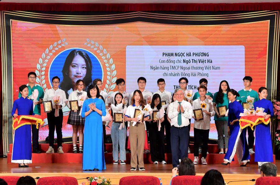 Về phía Ngân hàng TMCP Ngoại thương Việt Nam (Vietcombank) có: ông Hồng Quang - Thành viên HĐQT kiêm Giám đốc Khối Nhân sự, Ủy viên Ban Thường vụ Công đoàn Ngân hàng Việt Nam, Chủ tịch Công đoàn làm Trưởng đoàn Vietcombank tham dự Hội nghị; bà Phùng Nguyễn Hải Yến - Phó Tổng Giám đốc, Chủ tịch Công đoàn Vietcombank Trụ sở chính; ông Ngô Đức Bình - Phó Chủ tịch thường trực Công đoàn Vietcombank; ông Dương Bảo Trung - Bí thư Đoàn Thanh niên Vietcombank cùng đại diện lãnh đạo một số ban Công đoàn Vietcombank, các phòng liên quan tại TSC cùng 13 Học sinh Sinh viên (HSSV) là con em cán bộ nhân viên (CBNV), đoàn viên Công đoàn trong toàn hệ thống Vietcombank trong tổng số 209 HSSV là con em CBNV, ĐVCĐ toàn ngành ngân hàng đã có thành tích cao trong học tập và rèn luyện giai đoạn 2019 - 2022.