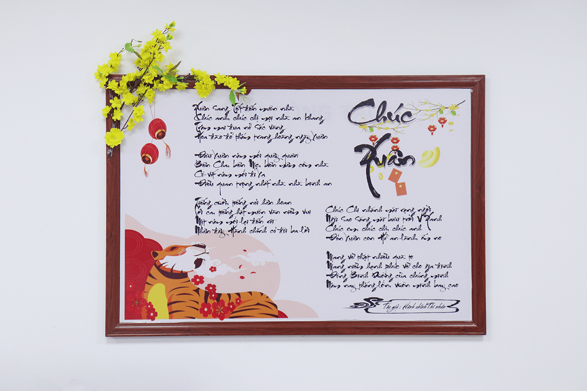 Bài thơ Chúc Xuân được phòng HCNSNQ tự sáng tác và thiết kế để trang trí trong phòng làm việc