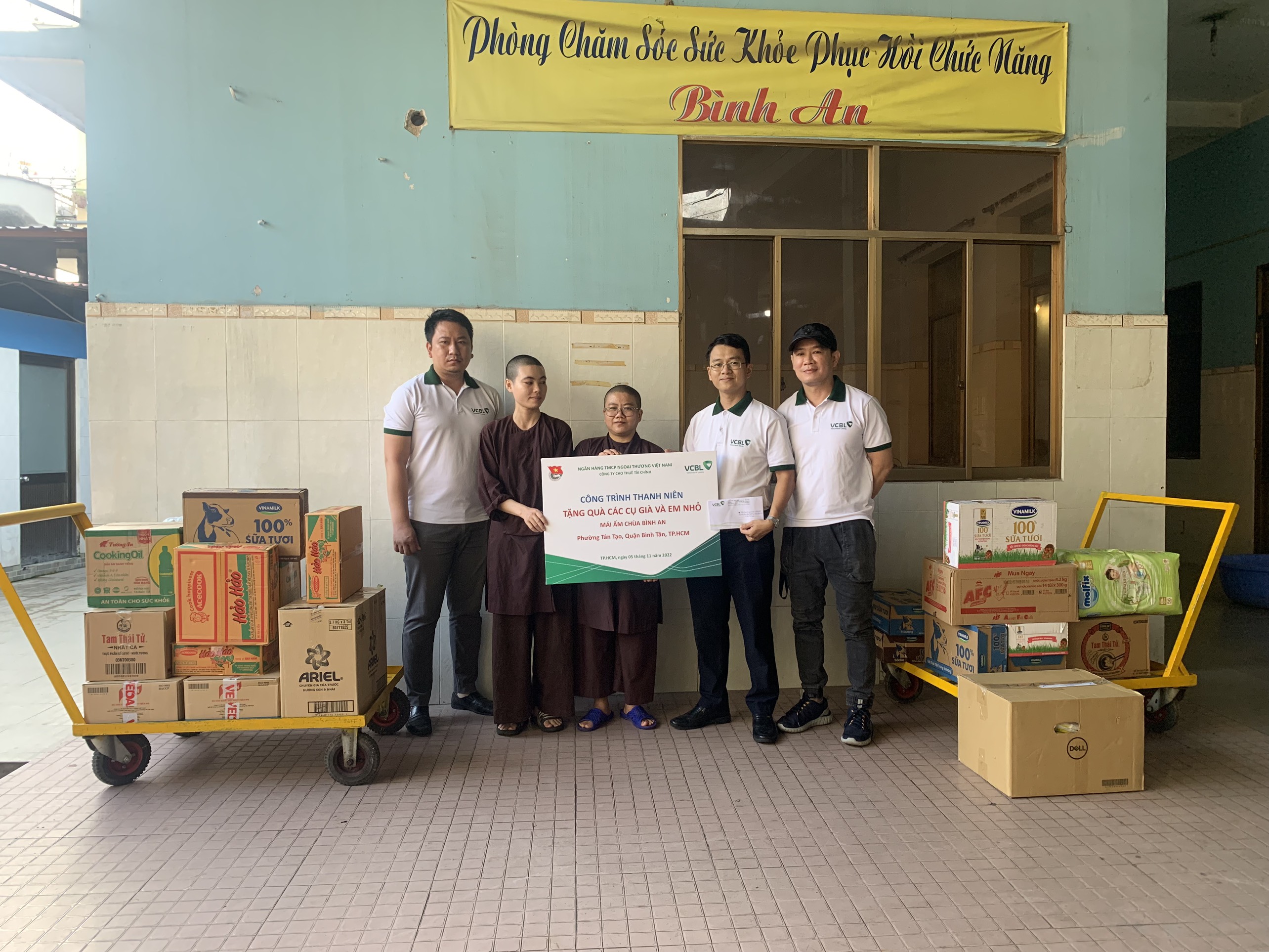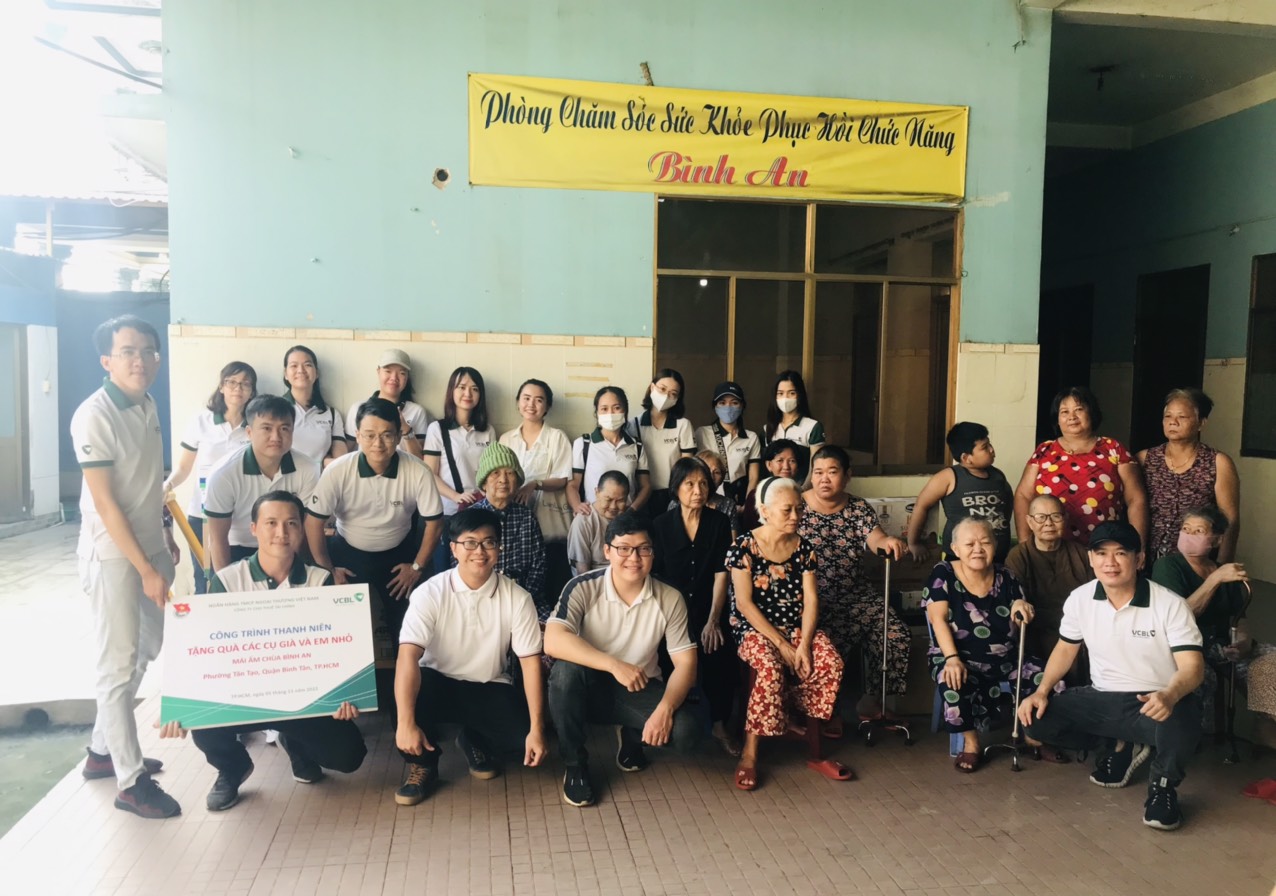 Đoàn thanh niên VCBL HCM đã đến thăm, tặng quà nhu yếu phẩm như gạo, sữa, dầu ăn, bỉm, tã giấy,… hỗ trợ phí sinh hoạt cho các cụ già và trẻ em không nơi nương tựa đang được cưu mang tại đây.