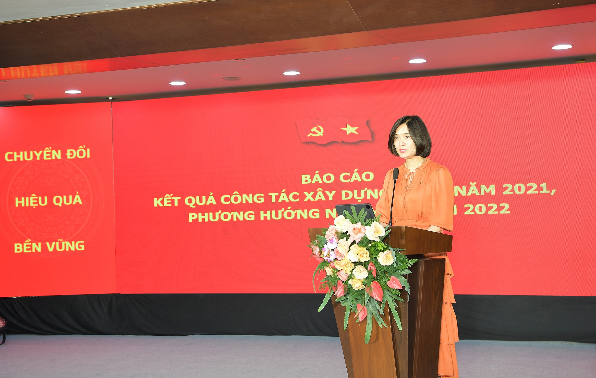 Đ/c Phùng Nguyễn Hải Yến – Ủy viên Ban Thường vụ Đảng ủy Vietcombank, Phó Bí thư Đảng ủy TSC, Phó Tổng Giám đốc Vietcombank trình bày báo cáo kết quả công tác Đảng năm 2021, phương hướng nhiệm vụ năm 2022