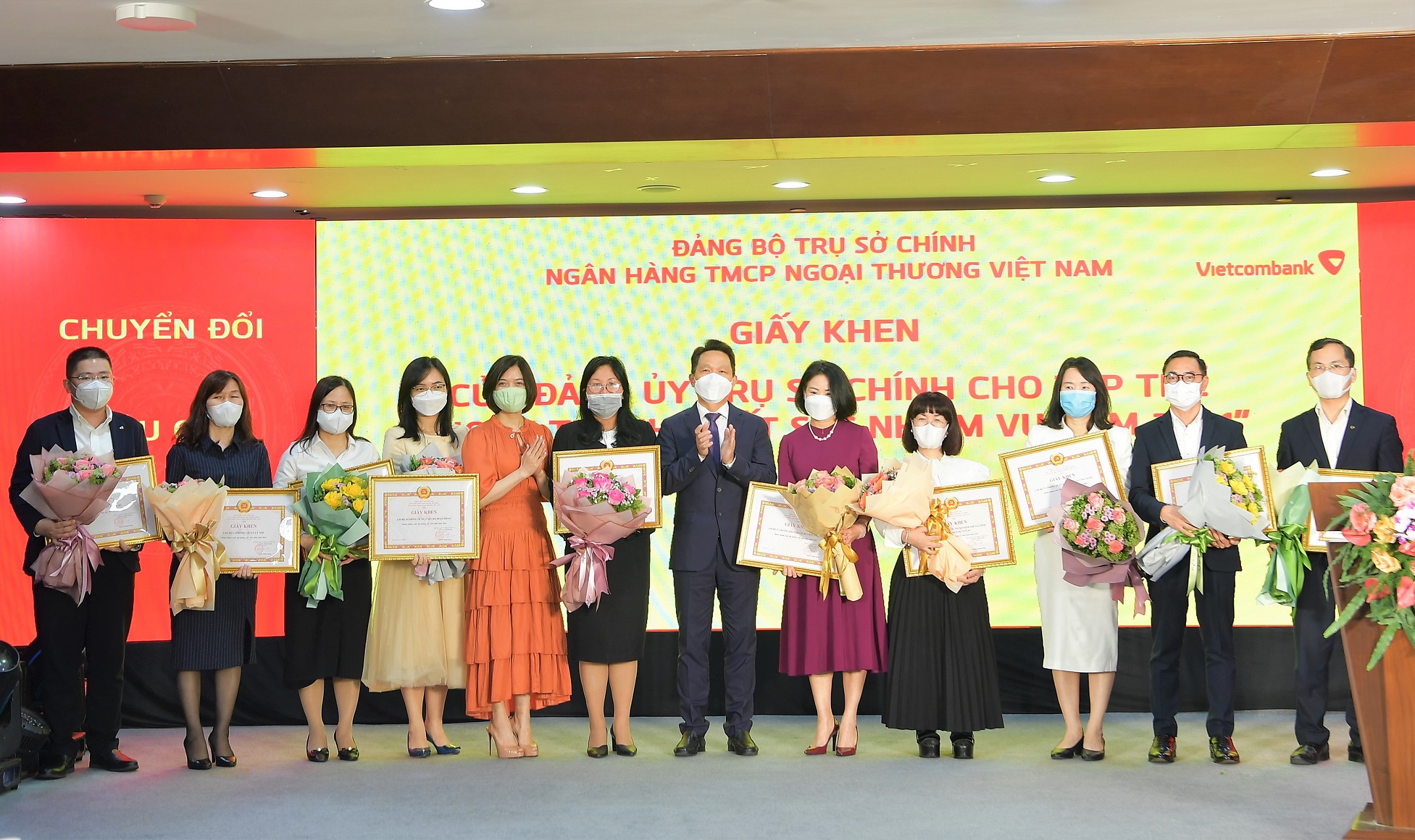 Tại Hội nghị, Đảng ủy Vietcombank đã trao tặng Giấy khen cho những tập thể, cá nhân thuộc Đảng bộ Vietcombank TSC đã có thành tích xuất sắc trong công tác năm 2021.