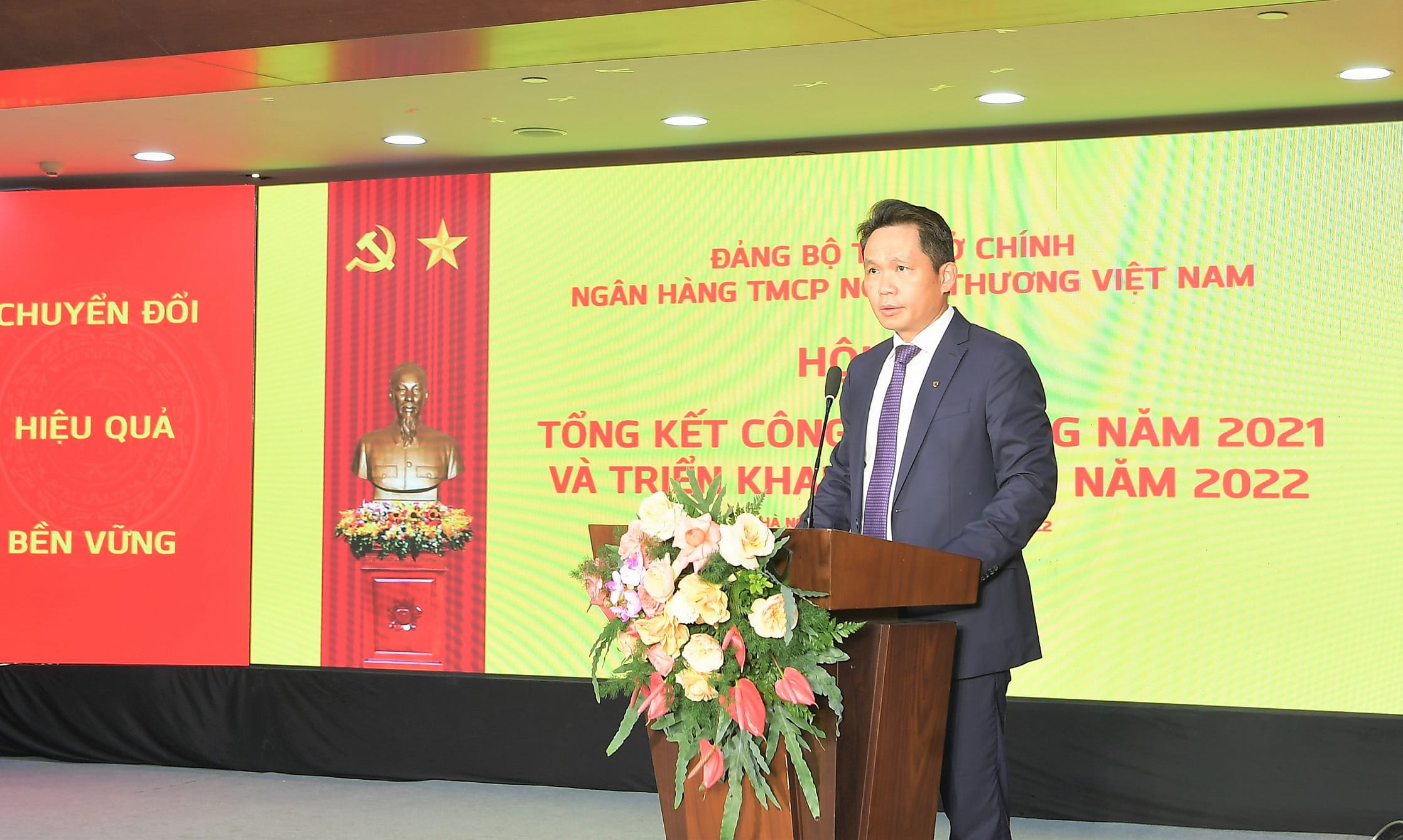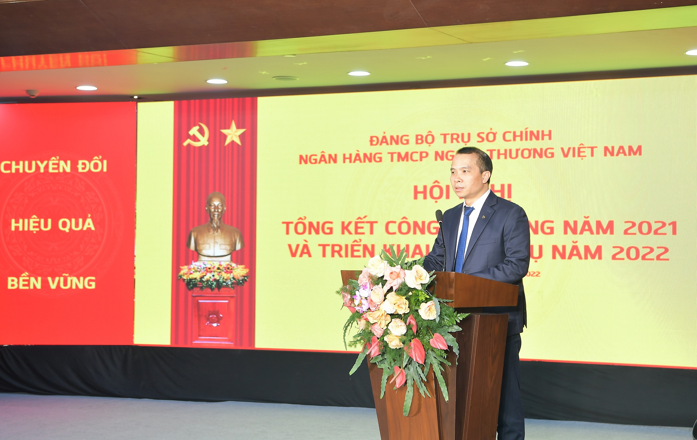 Hội nghị cũng đã được nghe ý kiến phát biểu chỉ đạo của đ/c Đỗ Việt Hùng - Phó Bí thư Thường trực Đảng ủy Vietcombank, Thành viên HĐQT. Đ/c Phó Bí thư Thường trực Đảng ủy Vietcombank đã có những đánh giá, ghi nhận và biểu dương về những kết quả đạt được của Đảng bộ Vietcombank TSC trong năm 2021. “Với tinh thần quyết tâm, đoàn kết, đổi mới, sáng tạo của tập thể lãnh đạo và cán bộ đảng viên tại TSC, tôi tin Đảng bộ TSC sẽ thực hiện thắng lợi Nghị quyết lãnh đạo nhiệm vụ chính trị và công tác xây dựng Đảng năm 2022 cũng như Nghị quyết Đại hội Đảng bộ nhiệm kỳ 2020 - 2025, đóng góp tích cực, quan trọng vào thành công chung của hệ thống Vietcombank”- Đồng chí Đỗ Việt Hùng nhấn mạnh.
